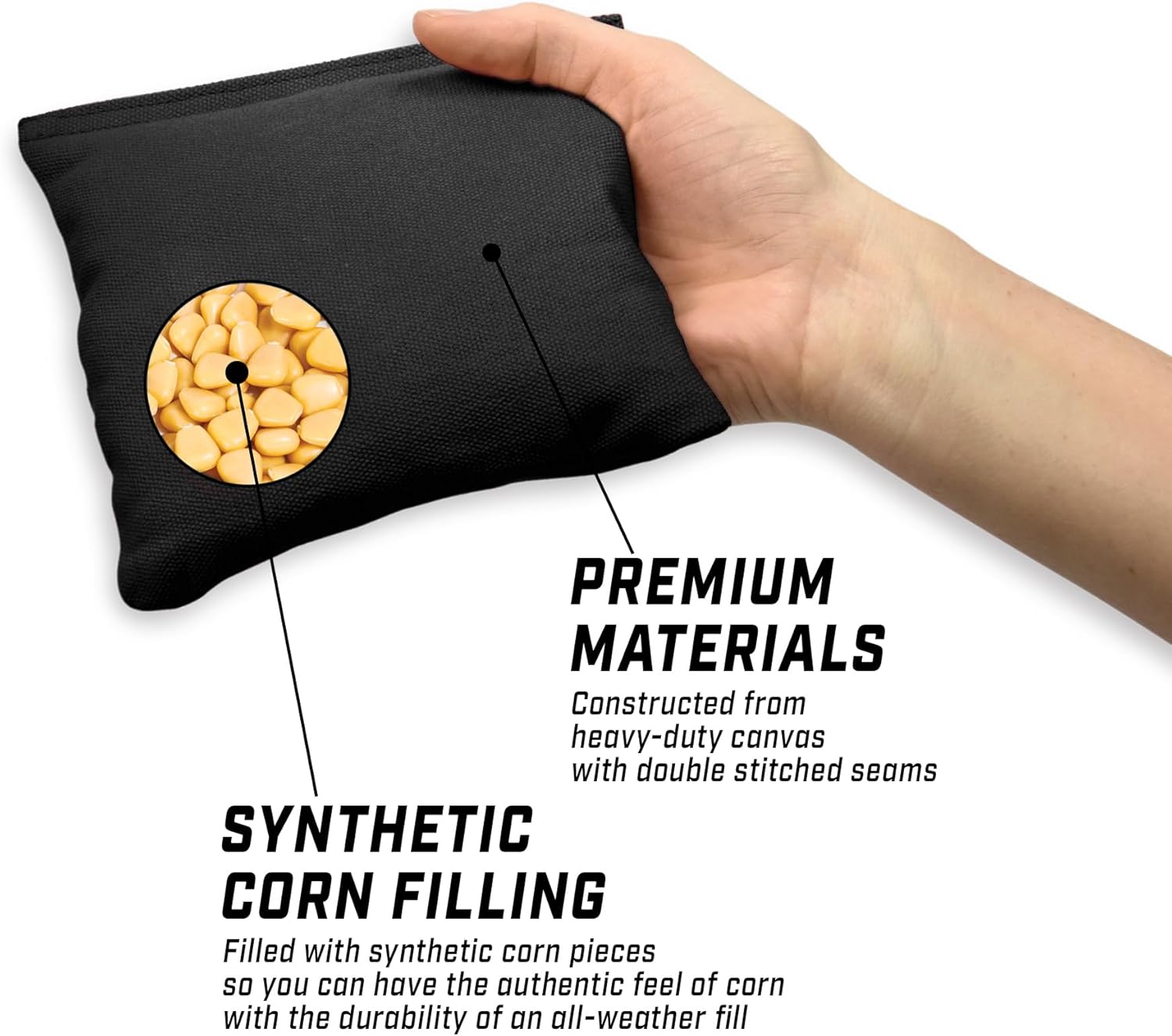 GoSports Cornhole Sitzsack-Set, 16 Farben erhältlich, Entenstoff mit Allwetter-Maisfüllung Schwarz,