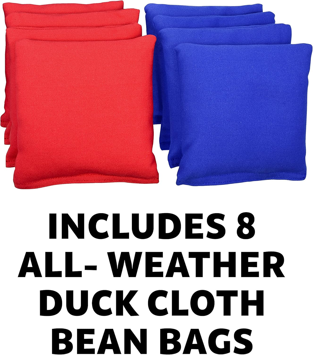 • Wetterfeste Wurfsäckchen: Enthält ein komplettes Set mit 8 Wurfsäckchen (4 rot + 4 blau) in offizieller Grösse (15 x 15 cm)