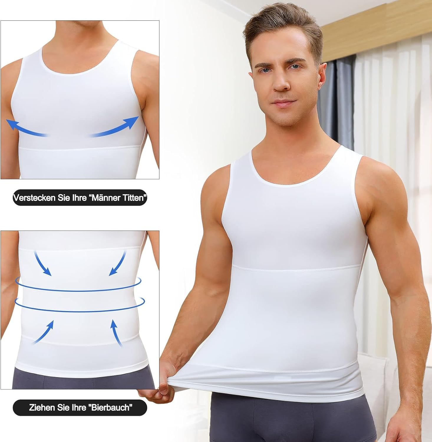 - FAT BURNING ASSISTANT: Mit diesem schlanken Herrenhemd, das sich leicht an Brust, Taille und Bauch anpasst, wurde unser Tank-Shirt speziell entwickelt, um das Erscheinungsbild von Gynäkomastie zu reduzieren, "Mann-Brüste" zu verbergen, mit "Bierbauch"