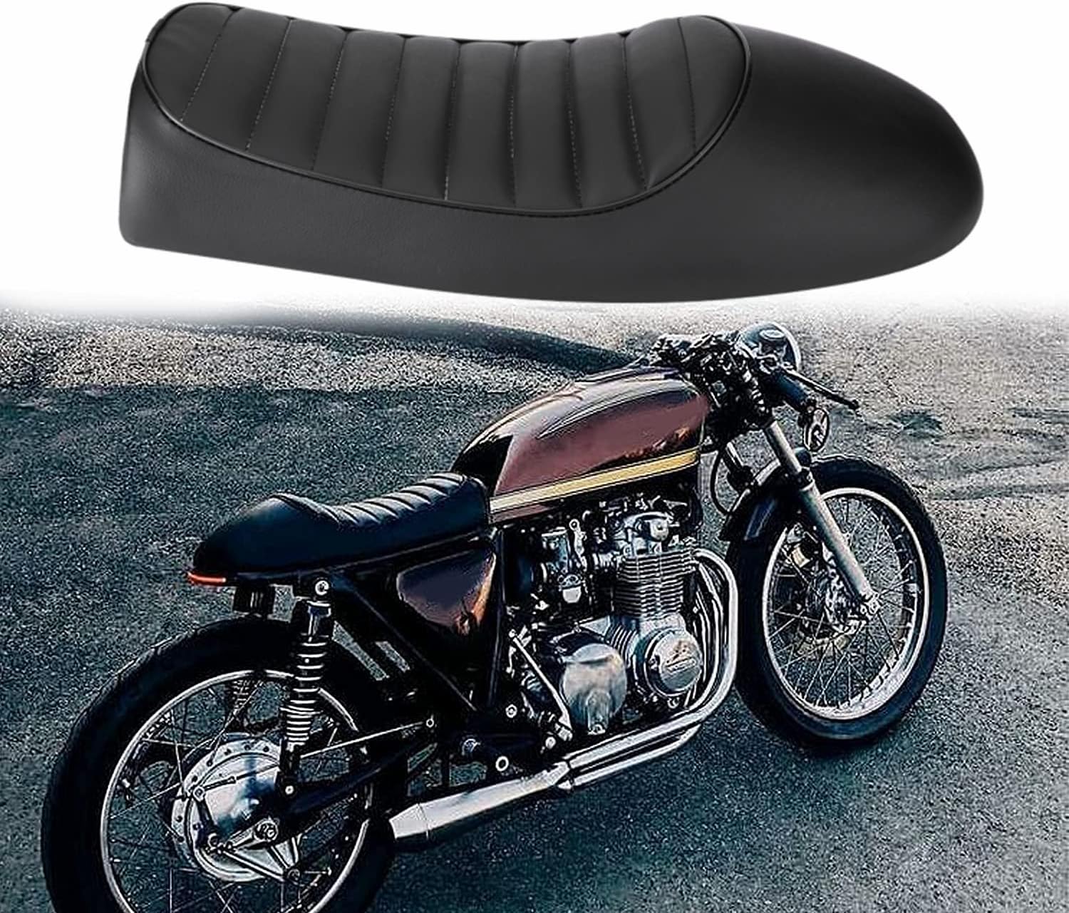 - ?sthetischer Komfort: Dieser Vintage Motorrad Sitz verleiht Ihrem Motorrad einen frischen Look mit eingebautem weichem Schaumstoff für verbesserten Fahrkomfort auf langen Fahrten. Sie werden eine glückliche und komfortable Fahrt haben.