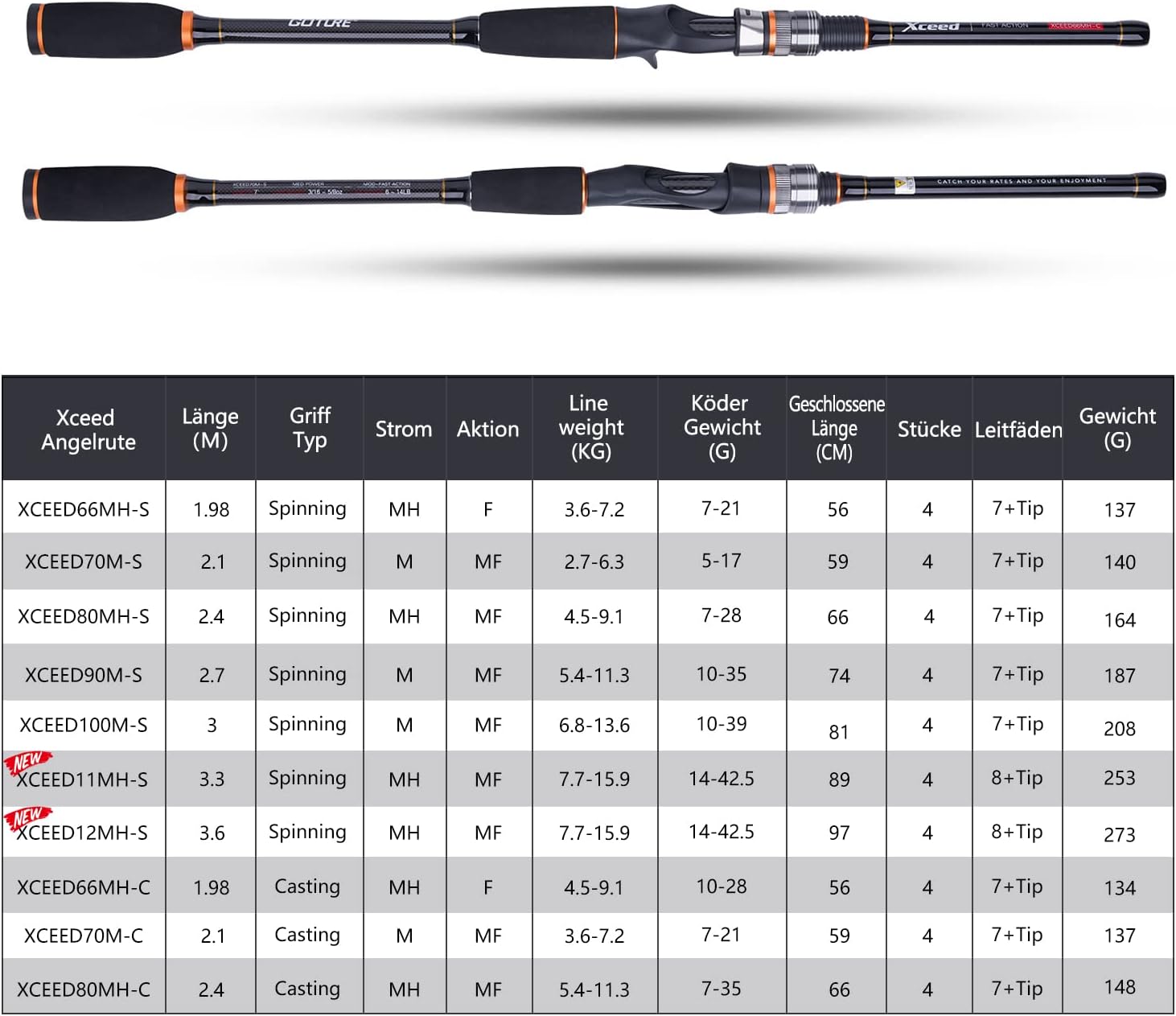 - VERSATIL: Wenn Sie nur eine Angelrute haben könnten, wäre diese 2/ 2.1 mittelschwer / mittelschwer die beste Wahl, damit Sie Spinnerbaits, Kurbelbaits, Buzzbaits und andere Köder für verschiedene Ziele fischen können