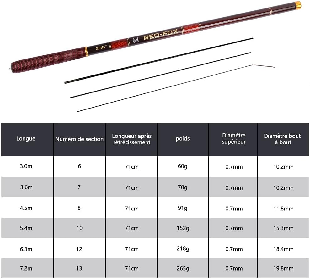 - VERSCHIEDENE TYPEN: RED-FOX-Serie und BREEZE-Serie sind beide mittelschwere Angelruten; Die GOLDLITE-Serie ist schnell und steifer als die anderen beiden Typen. Die Angelrute der GOLDLITE-Serie sind mit einer oberen und unteren Schraubkappe aus Aluminiumlegierung ausgestattet.