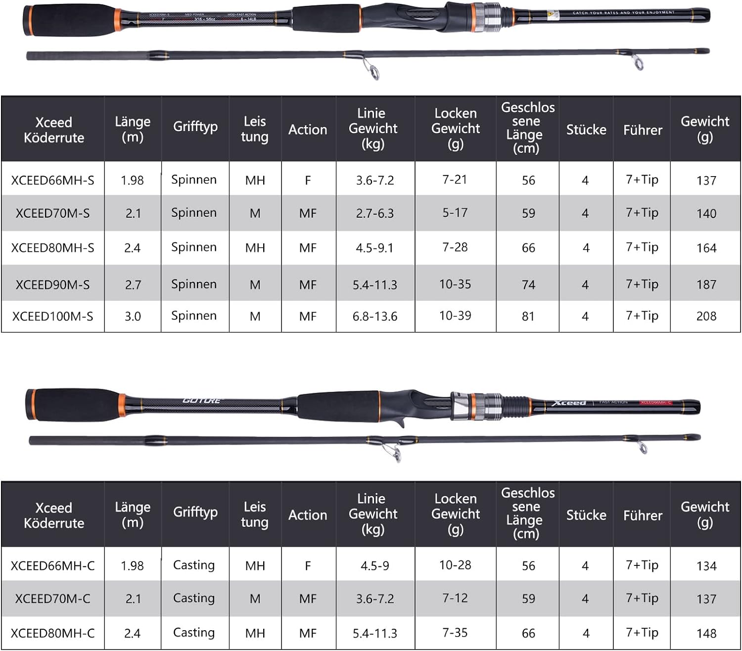 - VERSATIL: Wenn Sie nur eine Angelrute haben könnten, wäre diese 2/ 2.1 mittelschwer / mittelschwer die beste Wahl, damit Sie Spinnerbaits, Kurbelbaits, Buzzbaits und andere Köder für verschiedene Ziele fischen können