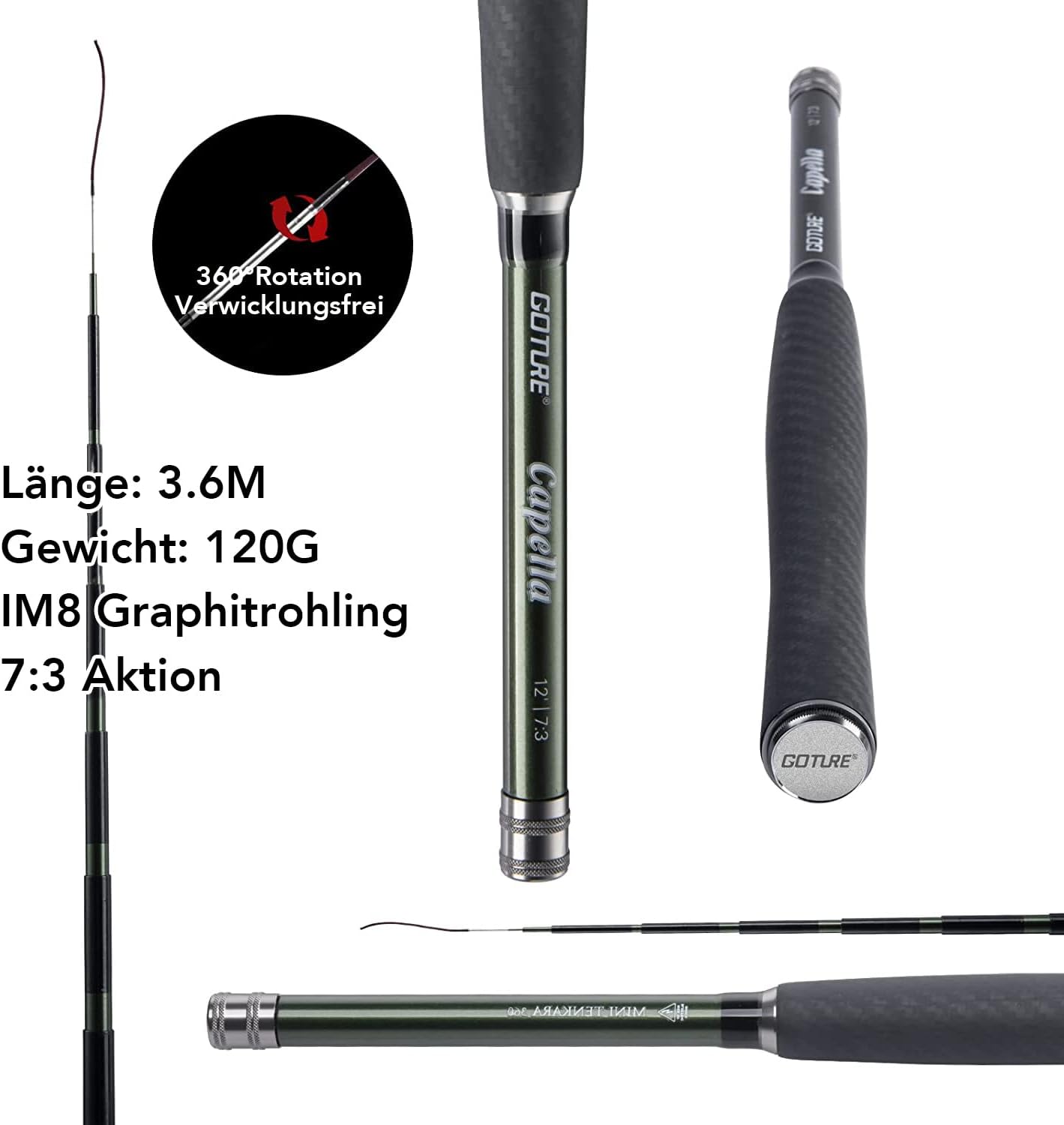 - 【Fliegenrute】4-teilige Rute//Schlangenauge//Korkgriff//2 Aktionen: 5/6 M und 7/8 MH