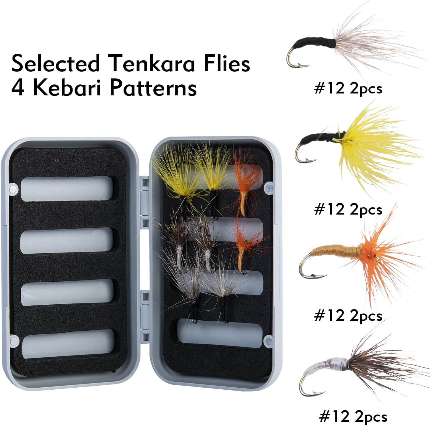 - 【Fliegenköder】Der Köder in der Box enthält insgesamt 8 klassische Trockenköder und Nassköder (je 2) // Die Hakengrösse umfasst # 14 # 12 # 10 # 8 // Boxgrösse: 10 * 6,5 * 2,2 cm // Die Box ist klein und tragbar und kann lange wiederverwendet