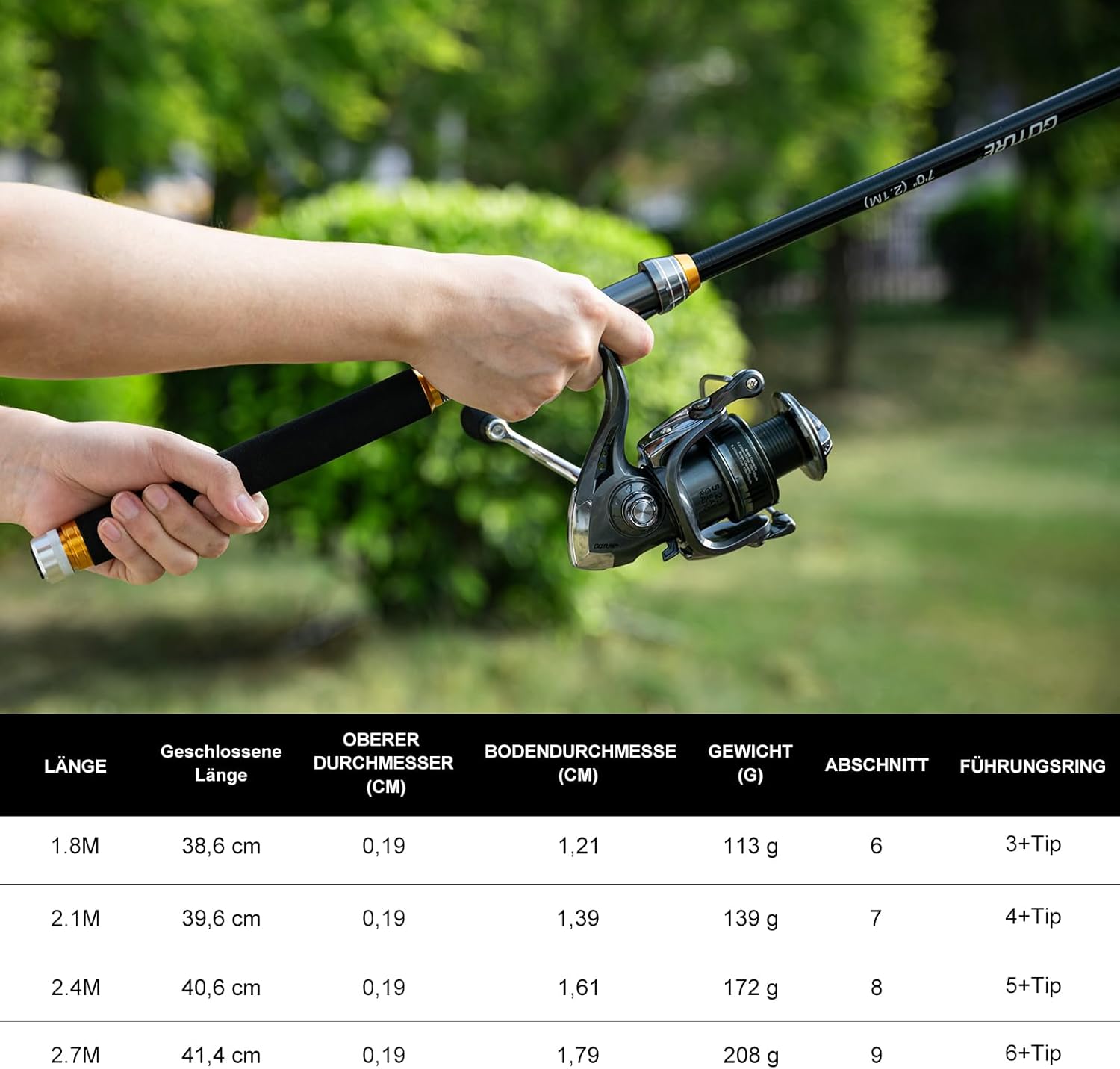 - Leichte Teleskop-Angelrute: Die Teleskoprute besteht aus 24T Carbonfaser und ist leicht, robust und widerstandsfähig. Edelstahlringe und Keramikringe minimieren die Schnurreibung und ermöglichen längere, gleichmässige Würfe. Der hochdichte EVA-Griff