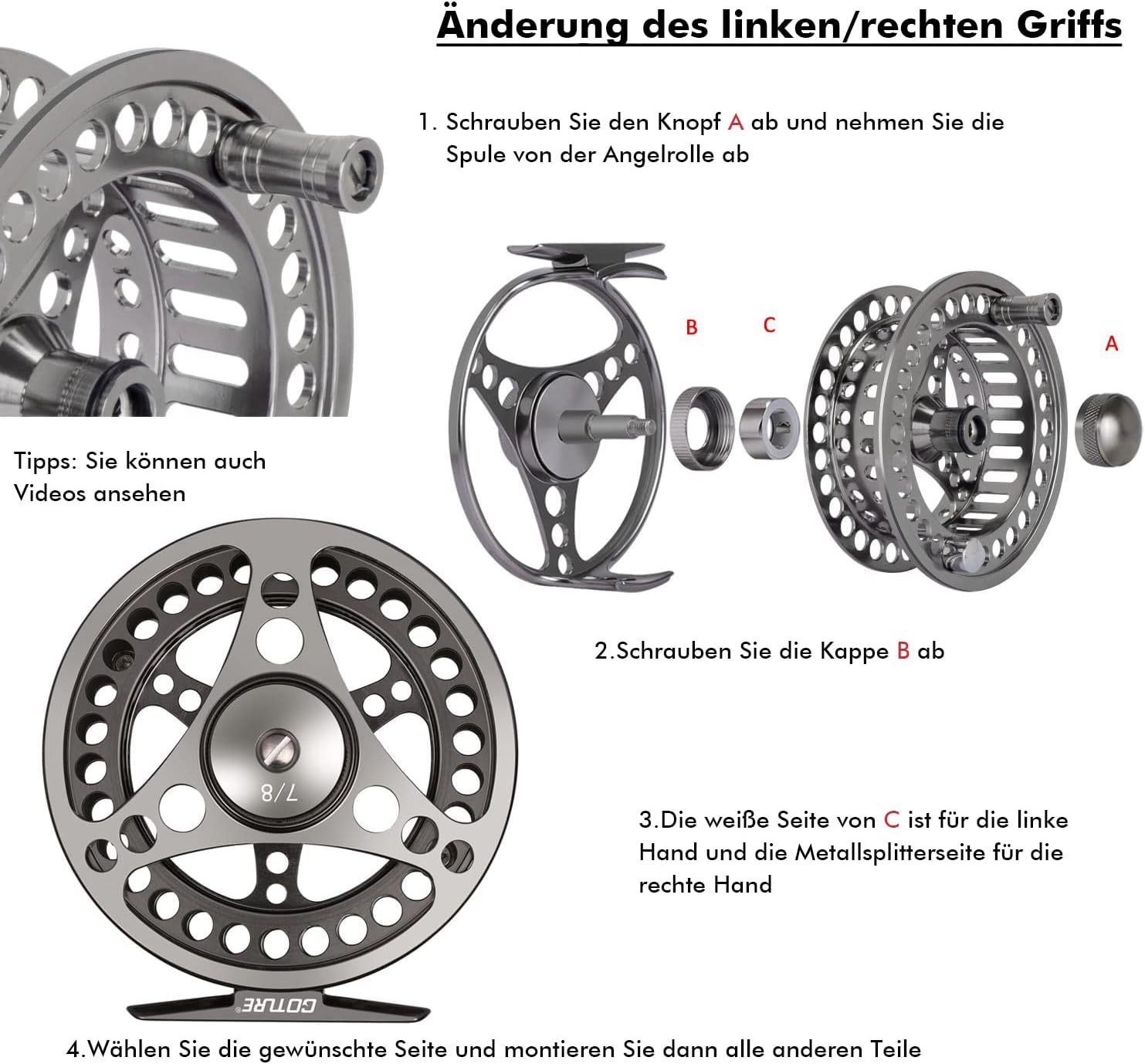 • Diese kompakte ultraleichte Fliegenfischenrolle gibt es in drei Grössen: 5/6, 7/8, 9/10. Hier finden Sie eine passende Rolle