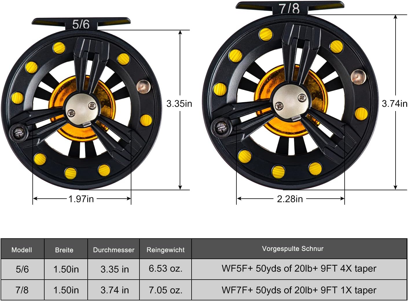 - 【Breites Anwendungsspektrum】 Goture Fliegenrollen sind perfekt für Süsswasser; normale Forellenflüsse oder -seen. Die 5/6 WT-Rolle ist besser für Anfänger und Barschangeln. Die 7/8 WT-Rolle ist geeignet für Rotbarsch, Seeforelle, Steelhead, Bass ect