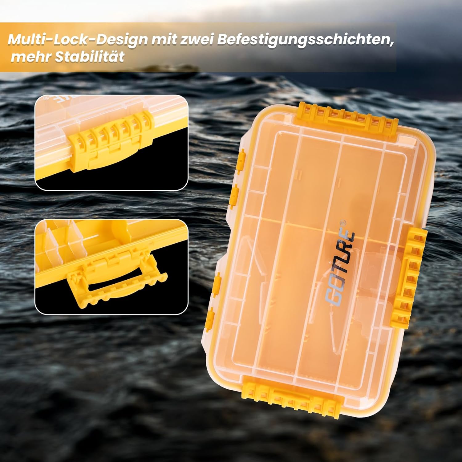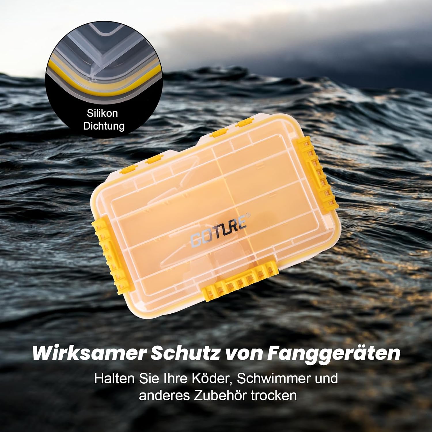 - 【Einfaches Tragen】Goture Angeln Tackle Box haben 2 Farben,Kleine Grösse(270mm x180mm x50mm) und Grosses Grösse(355mm x 225mm x56mm).Jede Grösse treffen Sie benötigen.Leichtes Gewicht, grosses Fassungsvermögen, leicht zu tragen. Der perfekte