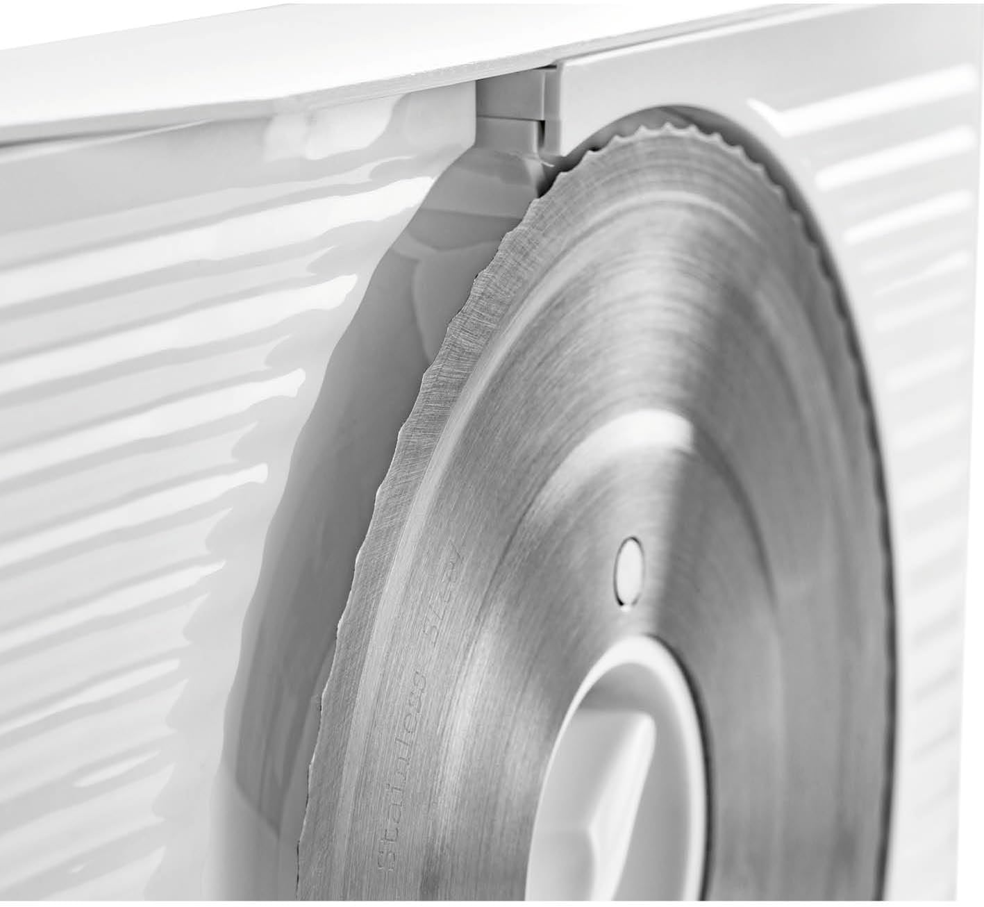 - LEISTUNGSSTARK: Mit 150 Watt sorgt der Allesschneider für kraftvolles und gleichmässiges Schneiden ohne grossen Kraftaufwand.