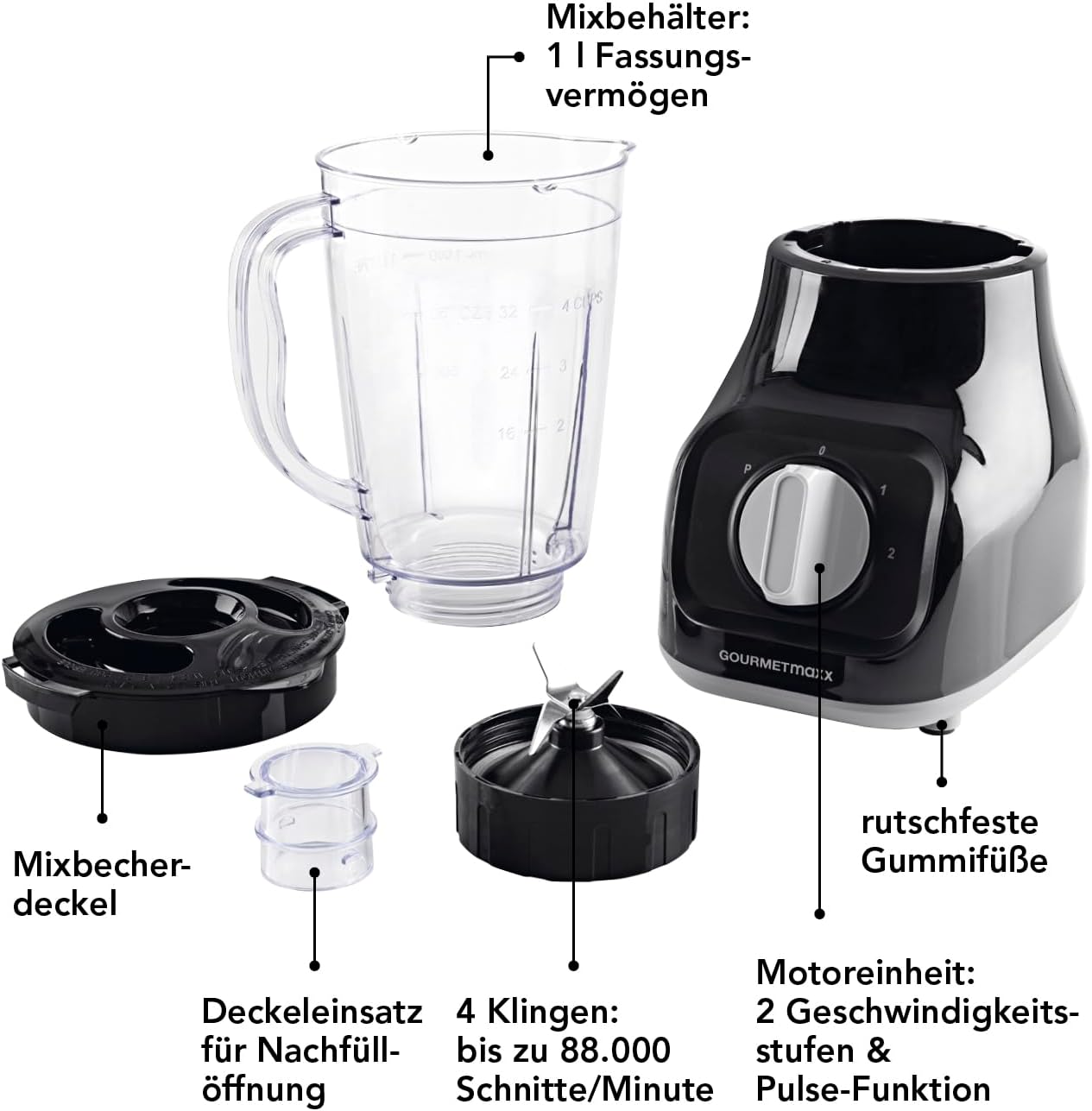 GOURMETmaxx Standmixer mit 4 Edelstahlklingen, 2 Geschwindigkeiten & Pulse-Funktion I Mixbehälter ge