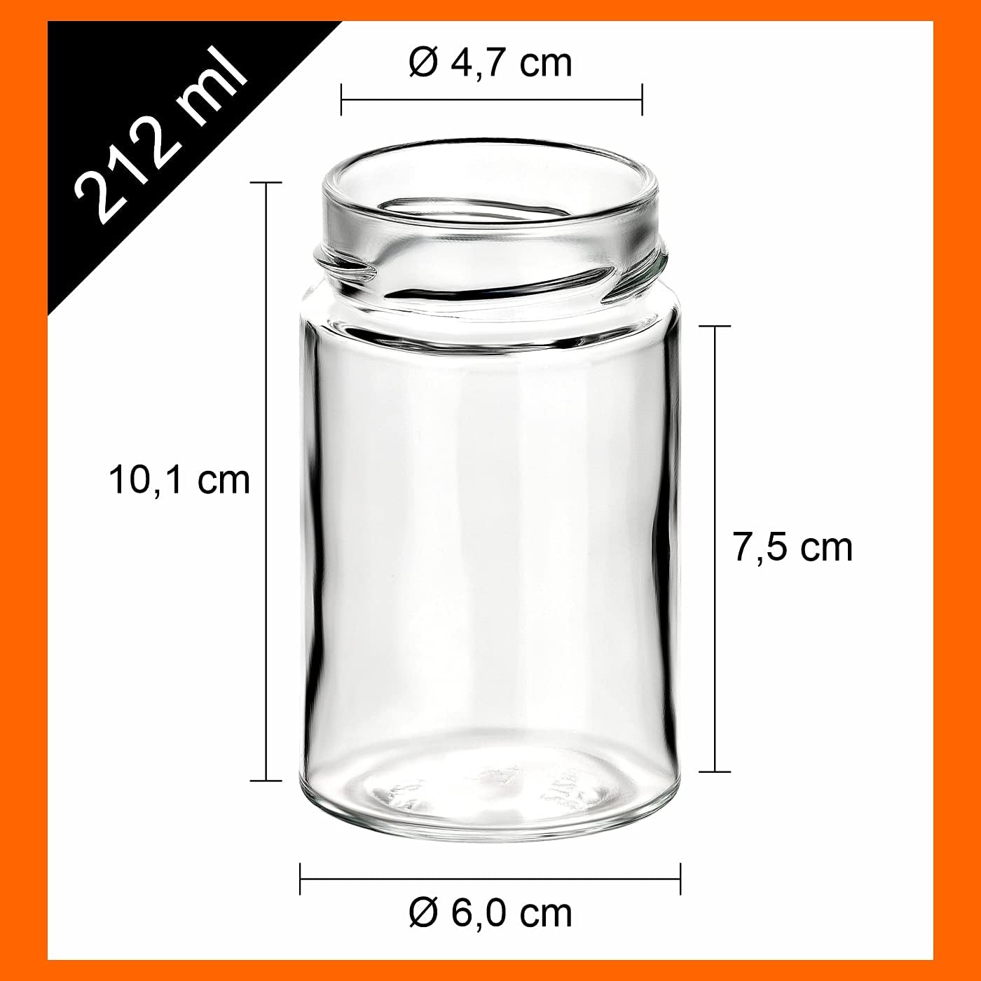 - LIEFERUMFANG: 12x Einmachglas, 12x Deckel // Nennvolumen: ca. 212 ml // Masse Glas (ØxH): 6,1 x 10,3 cm // Masse Öffnung (Ø): ca. TO 58 mm // Gewicht: ca. 163 g // Material: Glas, Metall // Farbe: goldfarben