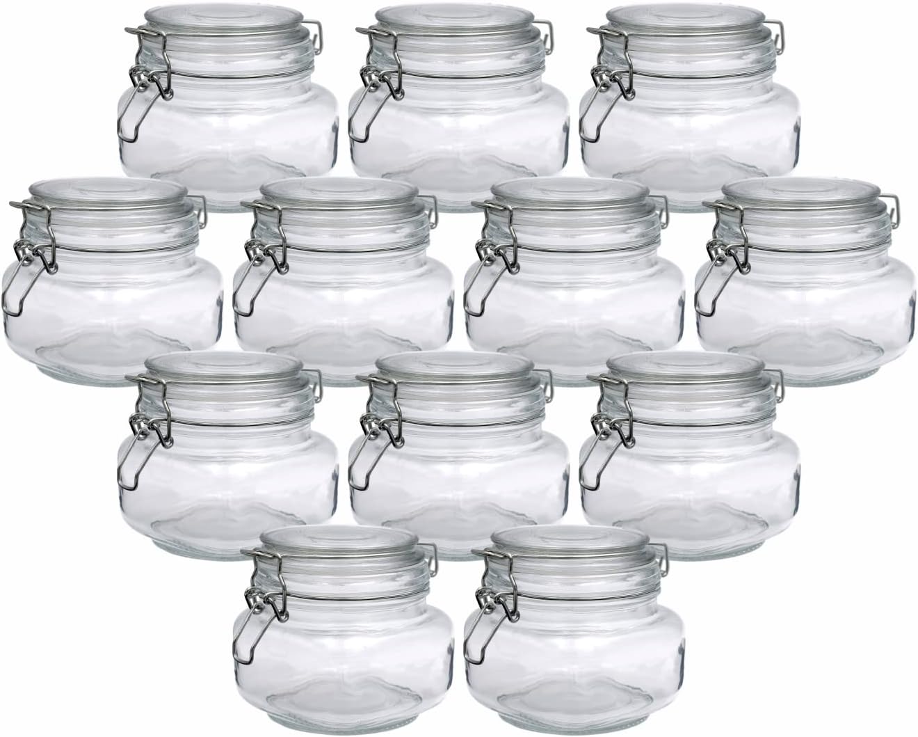 - LIEFERUMFANG: 12x Einmachglas mit Bügelverschluss // Masse (LxBxH): ca. 11 x 11 x 10 cm // Glas-Öffnung (Ø): ca. 8,3 cm // Nennvolumen: ca. 500 ml // Gewicht: ca. 500 g // Material: Glas, Metall, Gummi