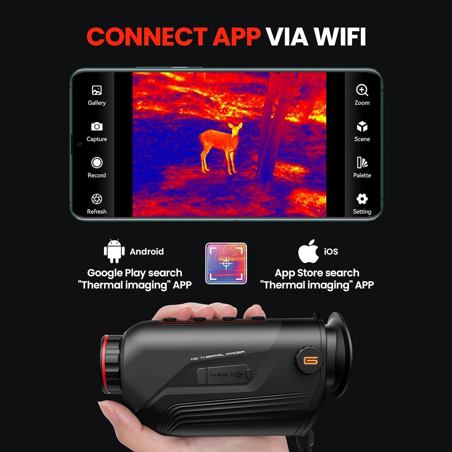 - 【Nahtlose Drahtlose Verbindung über Dedizierte App】 Das Monokular ermöglicht eine reibungslose drahtlose Verbindung über eine dedizierte App. Diese Funktion verbessert die Benutzererfahrung, indem sie es Ihnen ermöglicht, Wärmebilder in Echtzeit