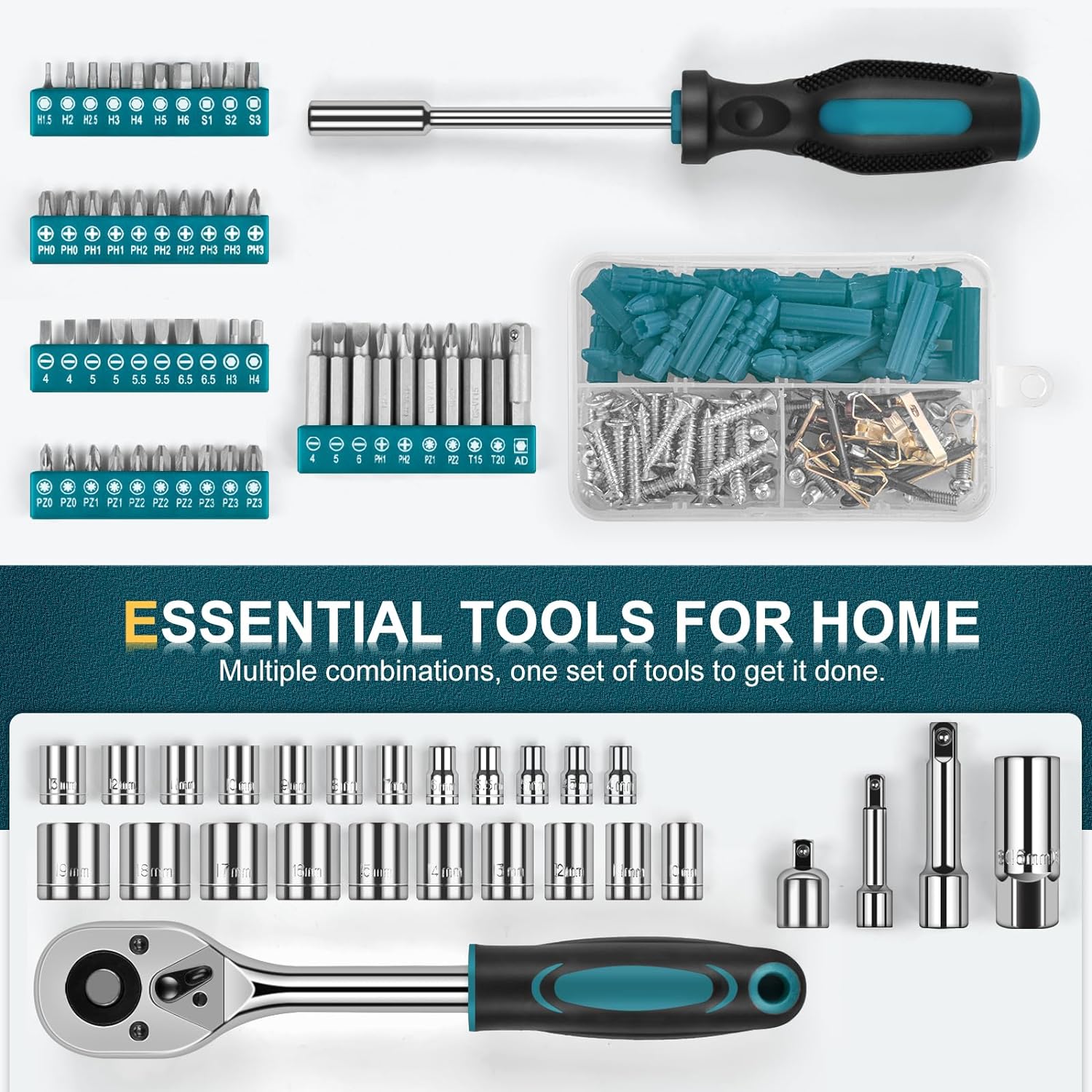 - 【287 Teile Werkzeugkoffer Gefüllt】Der werkzeugkoffer enthält Werkzeuge für Haus, Garage und Werkstatt: Kombischlüssel (Sechskantschlüssel, Maulschlüssel, Ratschenschlüssel), Zangen (Spitzzange, Abisolierzange, Wasserpumpenzange), Hämmer,