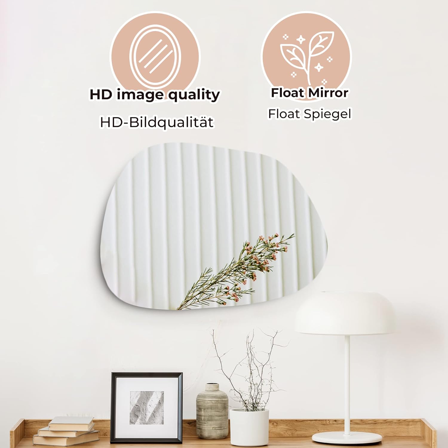 - INKLUSIVE MONTAGEMATERIAL - Der Wandspiegel wird inklusive nur eine Schraube und Dübel zur Montage an der Wand geliefert, sodass der Asymmetrischer Spiegel bombensicher hält! Zur Pflege kann ein leicht feuchtes Tuch verwendet werden!