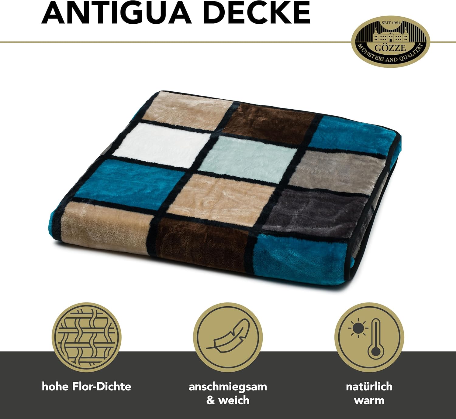 Gözze - Weiche Kuscheldecke, Cashmere Feeling, Hohes Stoffgewicht 500 g/m², Antigua, 150 x 200 cm -