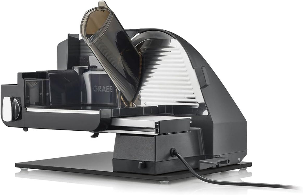 - Freitragender Premium-Allesschneider „Handmade in Germany“ aus Vollmetall mit edler Glasbodenplatte
