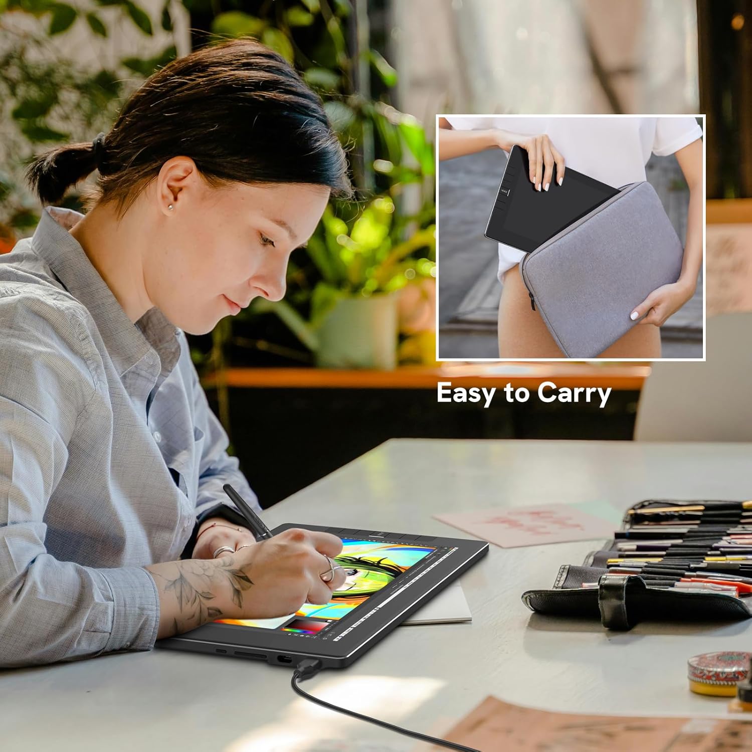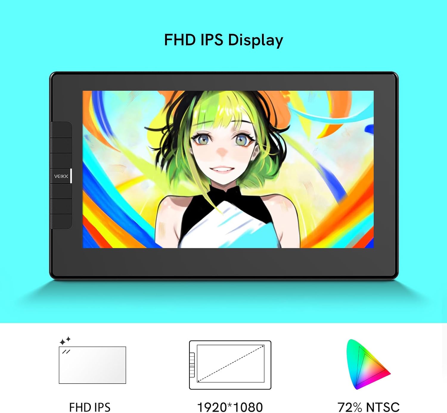 - 【11,6 Zoll LED-Zeichnungsmonitor】 Das VEIKK VK1200 Zeichentablett verfügt über einen 11,6-Zoll-LED-Bildschirm mit 1920 x 1080 IPS-Auflösung, 72 % NTSC-Farbraum und 8192 Druckempfindlichkeiten.