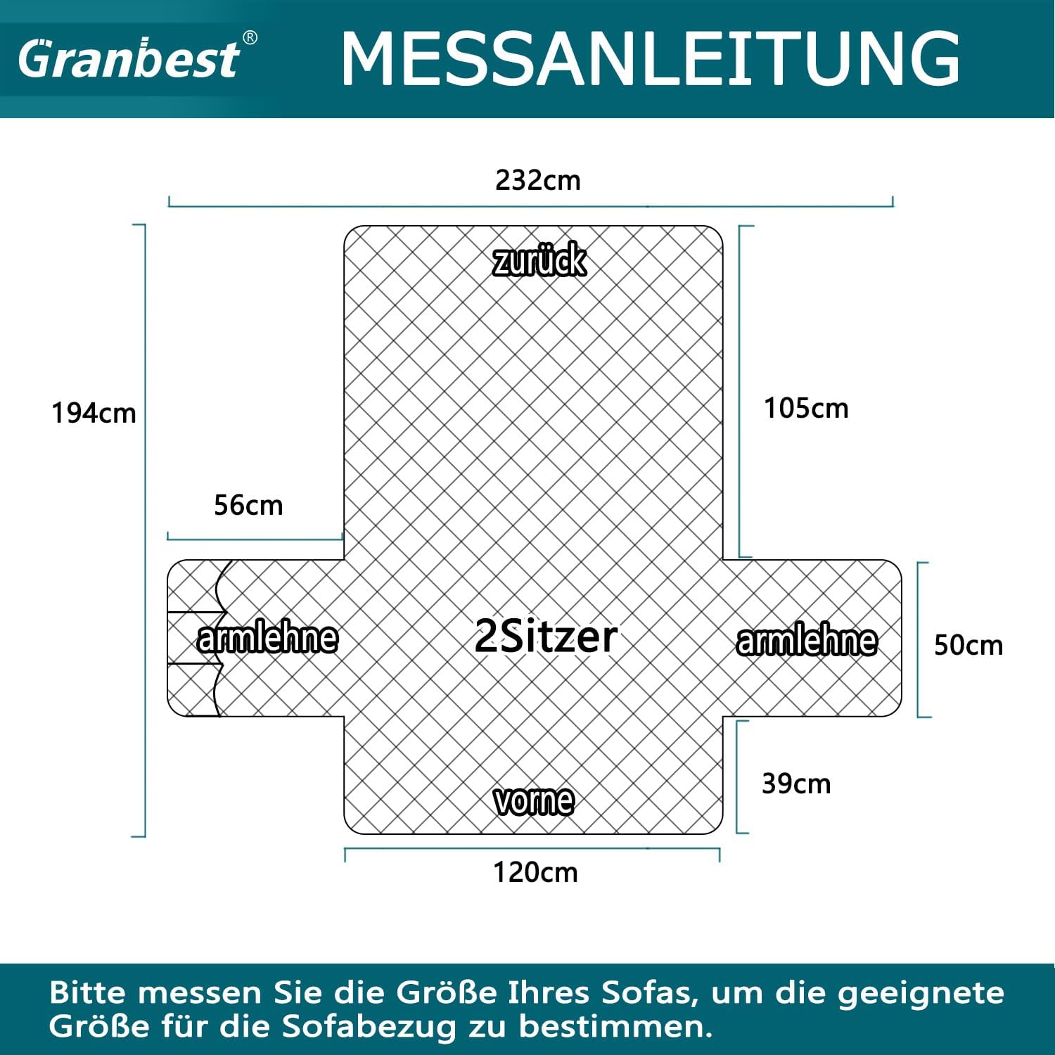 - 100% WASSERFESTES MATERIAL: Granbest wasserdichter Sofaschutz besteht aus wasserdichtem Technologiegewebe, das das versehentliche Verschütten effektiv verhindern und Ihre Möbel sauber und sauber halten kann. Das mehrlagige wasserabweisende Gewebe macht