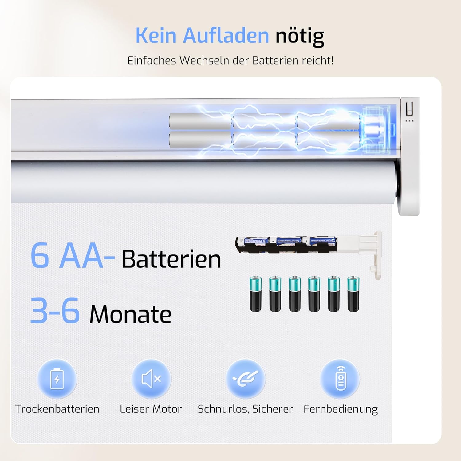- 【Lademethode】Wenn der Motor läuft, überschreitet das Dezibel 30 dB nicht und es gibt keine Lärmbelästigung; Eine ruhige und angenehme Zeit für Sie und Ihre Familie. Bei der Trockenbatterien (6AA) ist kein Aufladen erforderlich. Wechseln Sie