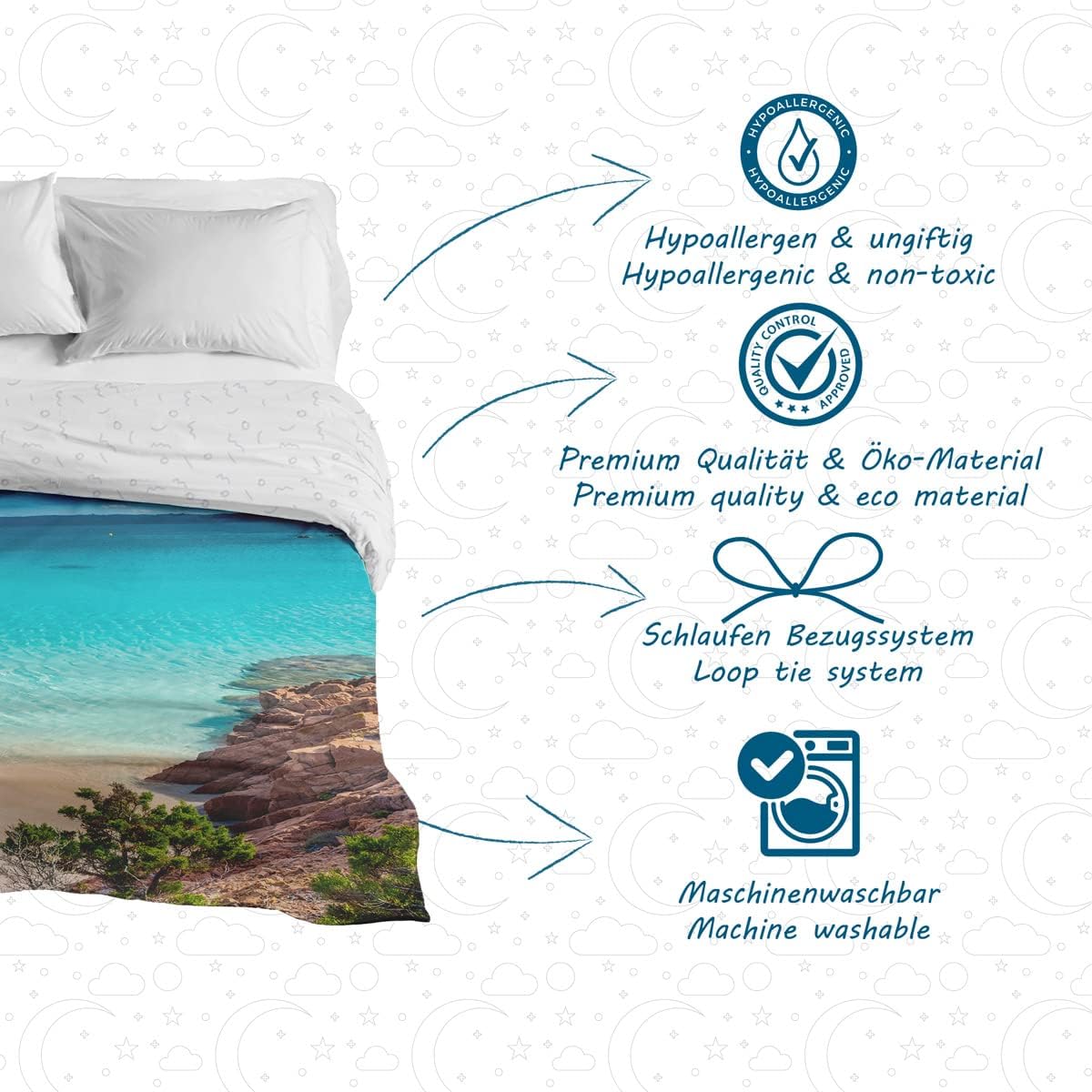 • Der Bettdeckenbezug mit Reissverschluss ermöglicht ein schnelles Wechseln der Bettwäsche und verbessert den Schlafkomfort. 12 verdeckte Schlaufen verhindern das Verrutschen der Bettdecke im Inneren des Bezuges.