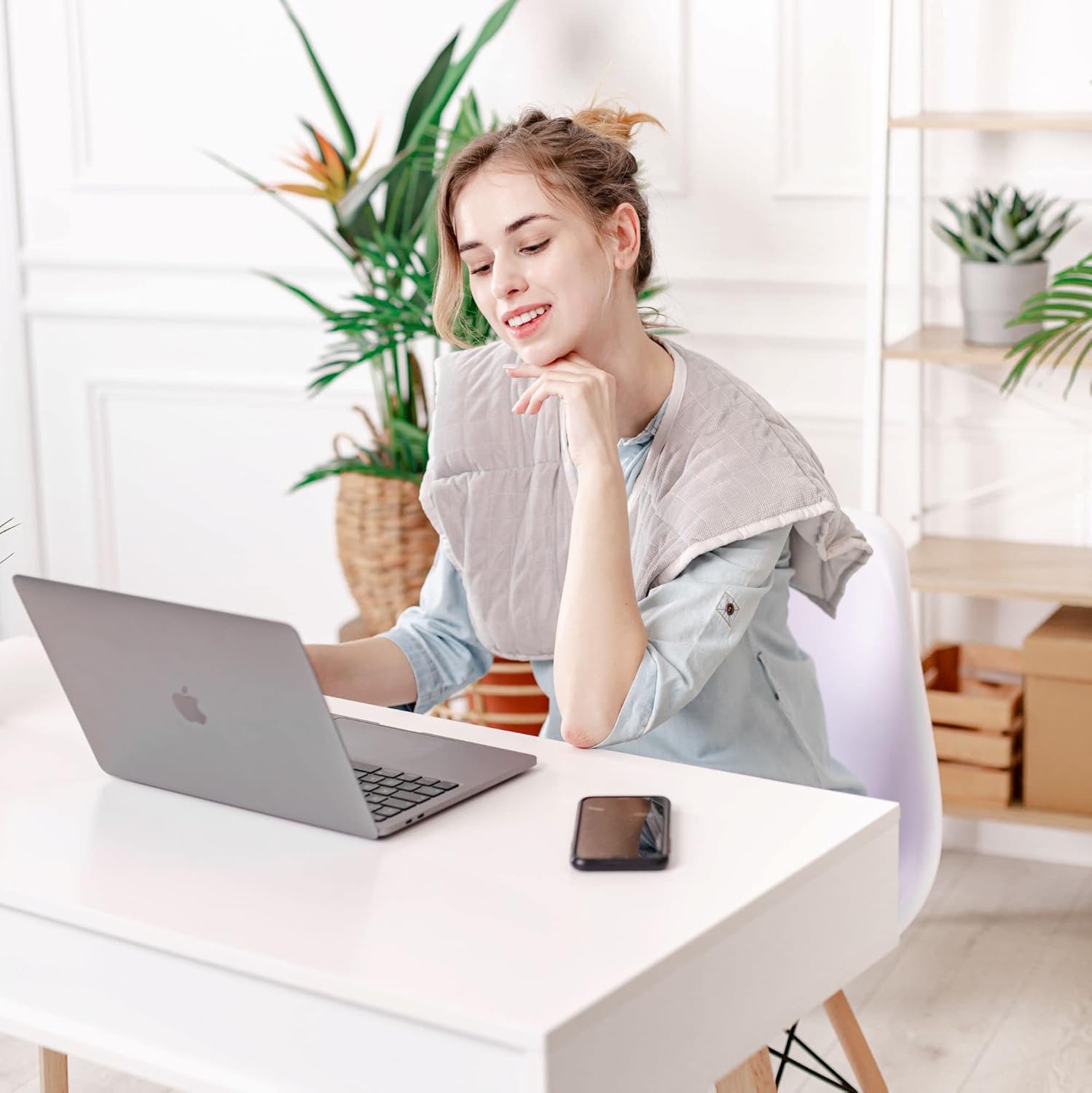 - Unabhängig davon, wo Sie arbeiten, ist es wichtig, dass Sie auf eine korrekte Körperhaltung achten. Ein Gewichtskragen verringert Fehlhaltungen bei der Arbeit. Ein beschwertes Kissen hilft, Stress abzubauen und wiederkehrende Beinkrämpfe zu bekämpfen.