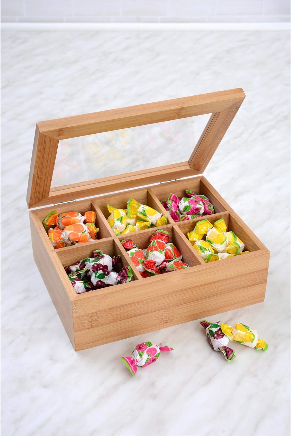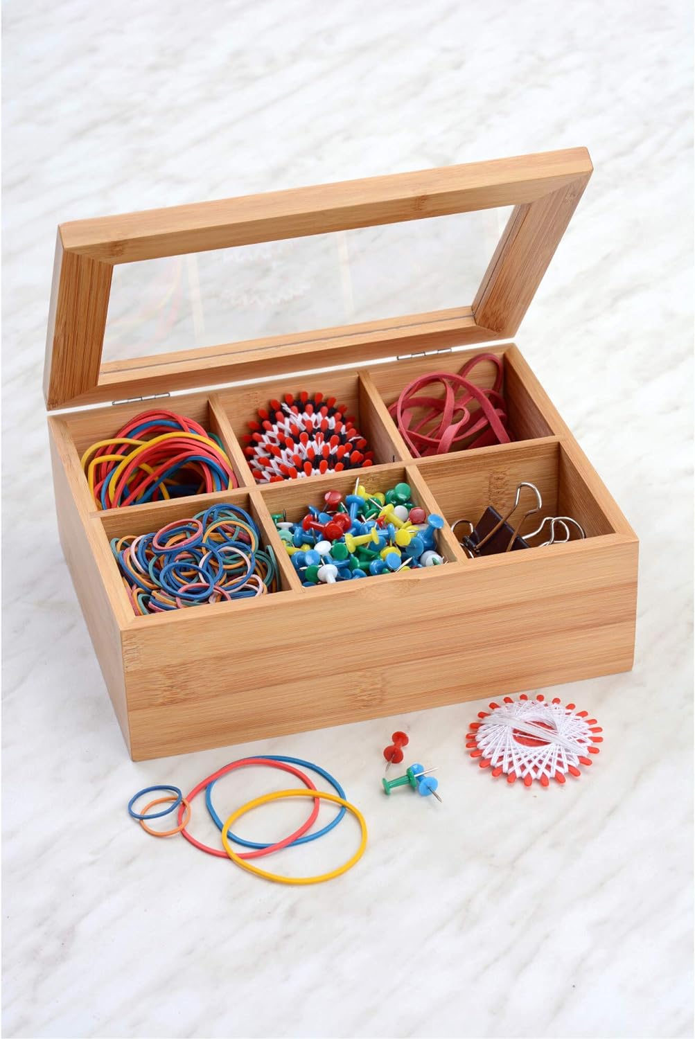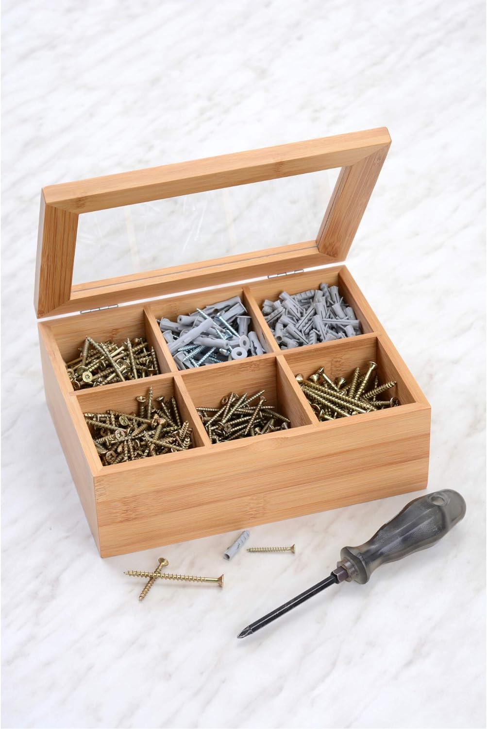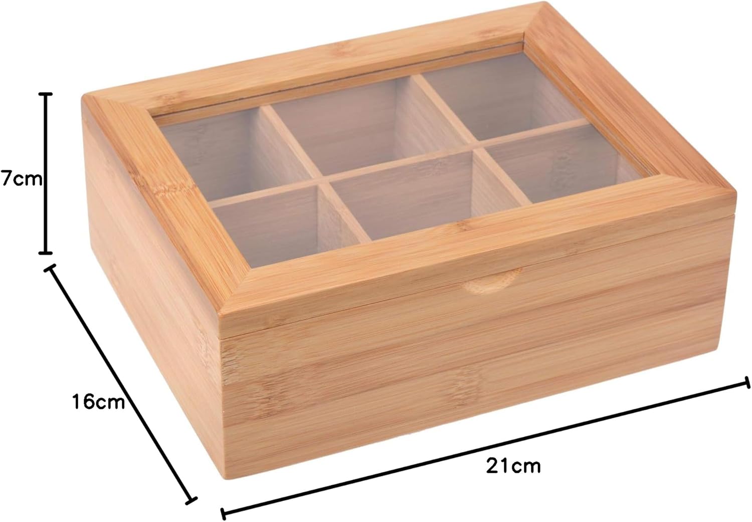GRÄWE Aufbewahrungsbox aus Bambus mit 6 Fächern, klappbarer Deckel, Sichtfenster, Box zur Aufbewahru