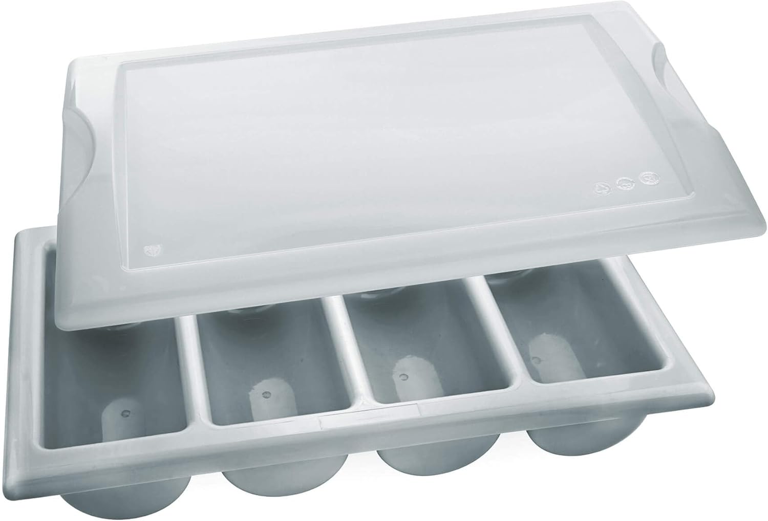 - GRÄWE Besteckkasten leer, 4 Fächer (Innenmass je Fach: Länge: ca. 25 cm, Breite: ca. 10,5 cm, Höhe: ca. 9,5 cm), aus Kunststoff, Farbe: Grau, Gastronorm 1/1, stapelbar, spülmaschinengeeignet, inkl. Deckel