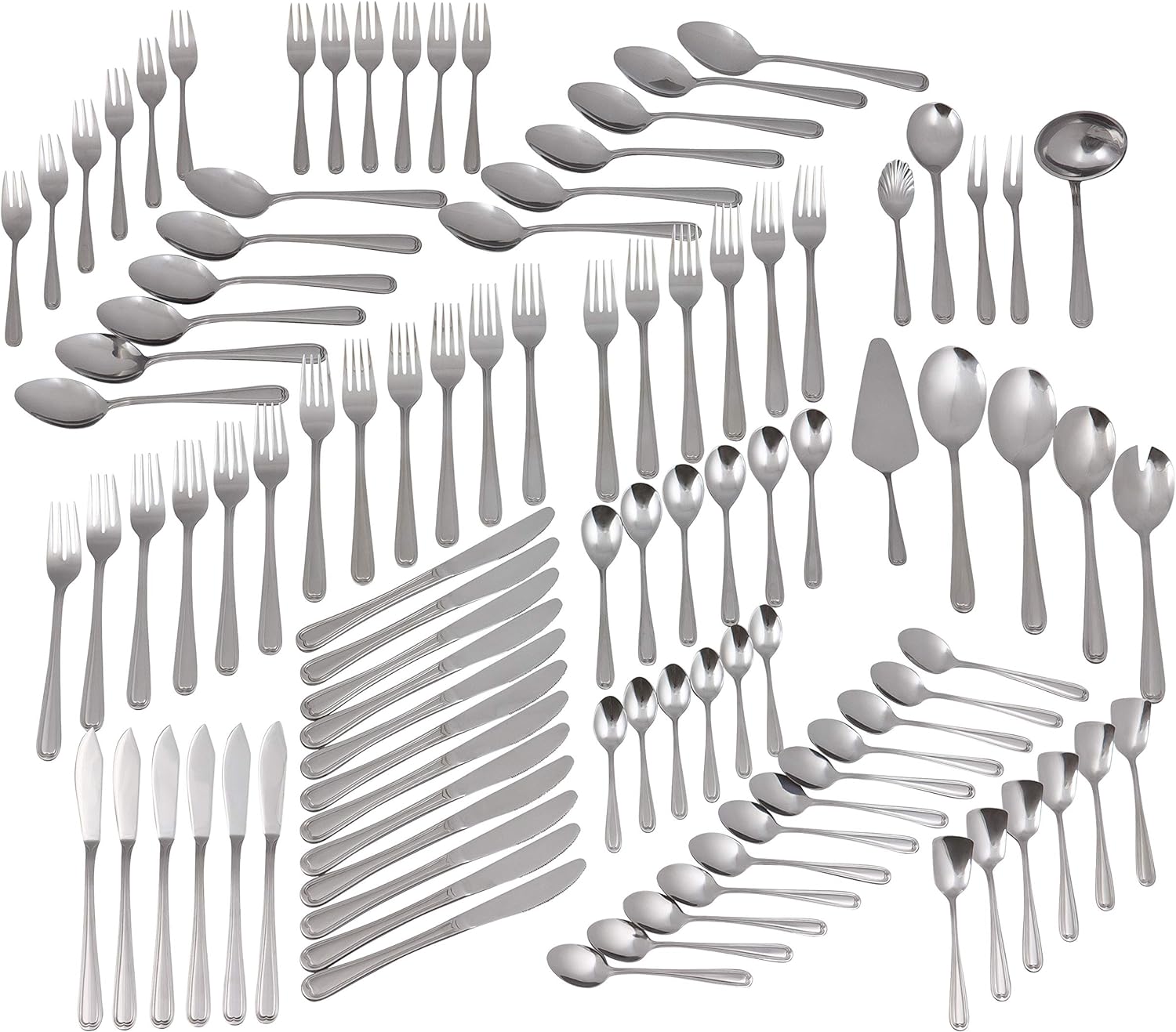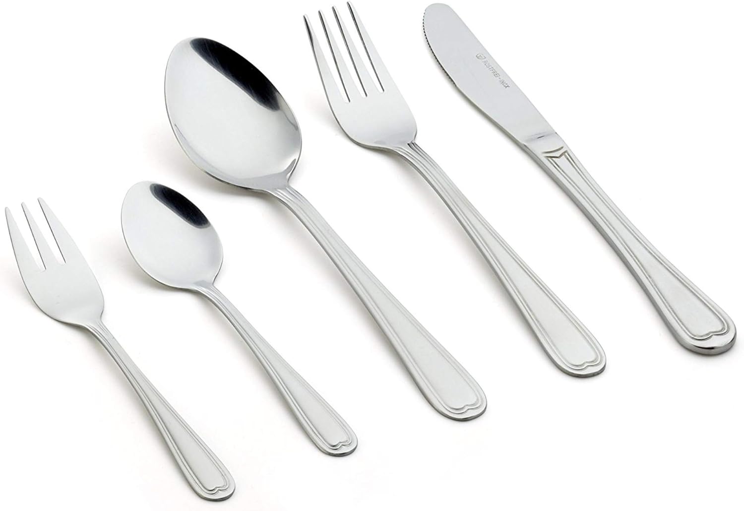 - Bei diesem Besteck Set ist alles dabei, was Sie zum Feiern oder für den täglichen Gebrauch benötigen. Dazu zählen jeweils 12 Hauptteile und viele Zusatzteile wie z. B. Tortenheber, Saucenlöffel oder Salatbesteck
