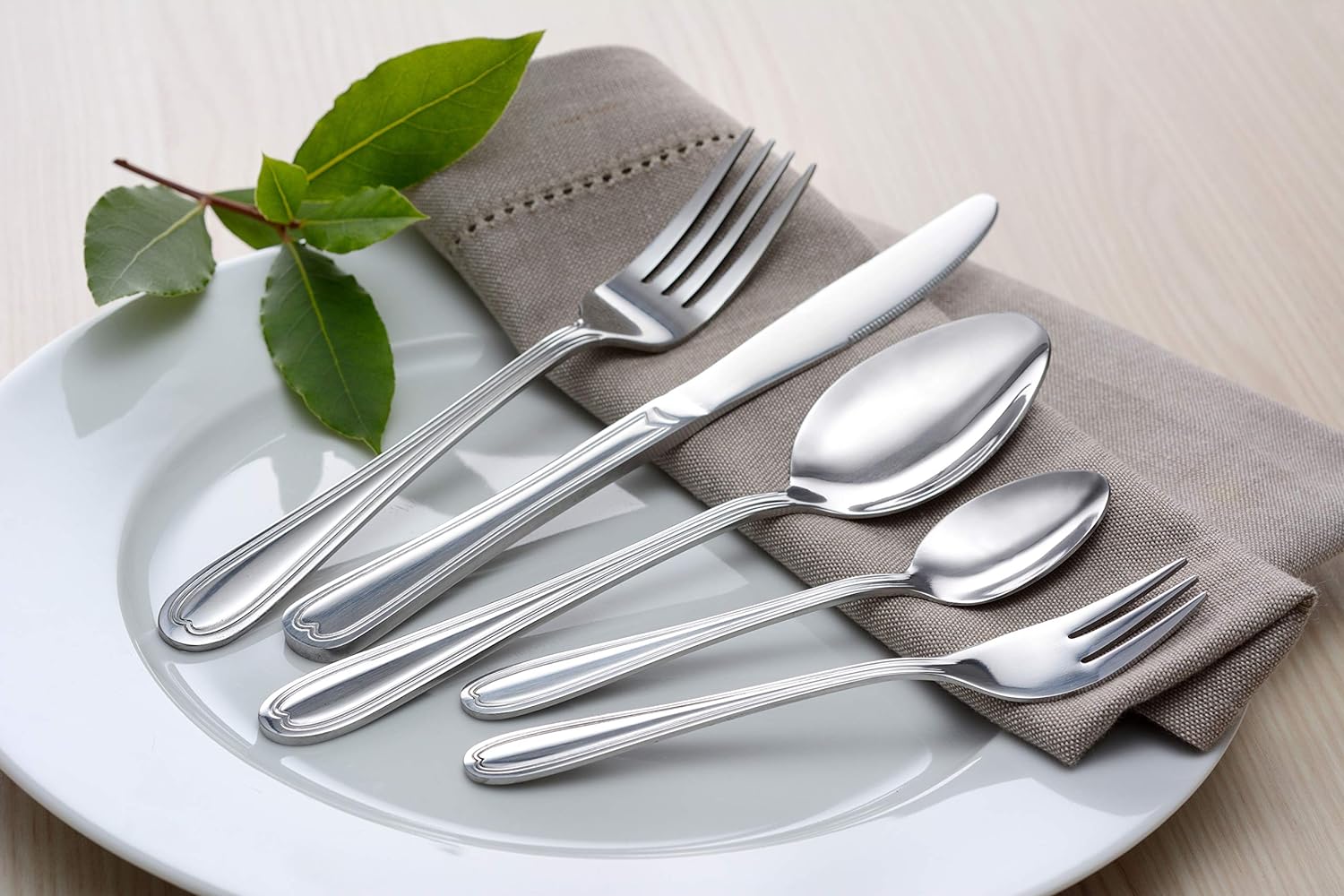 - Tafelbesteck 100-tlg., für 12 Personen, Serie SALZBURG. Klassischer Fadendekor, leichte Ausführung. Aus Edelstahl 18/0 (Chromstahl), handpoliert, spülmaschinengeeignet, rostfrei, nickelfrei