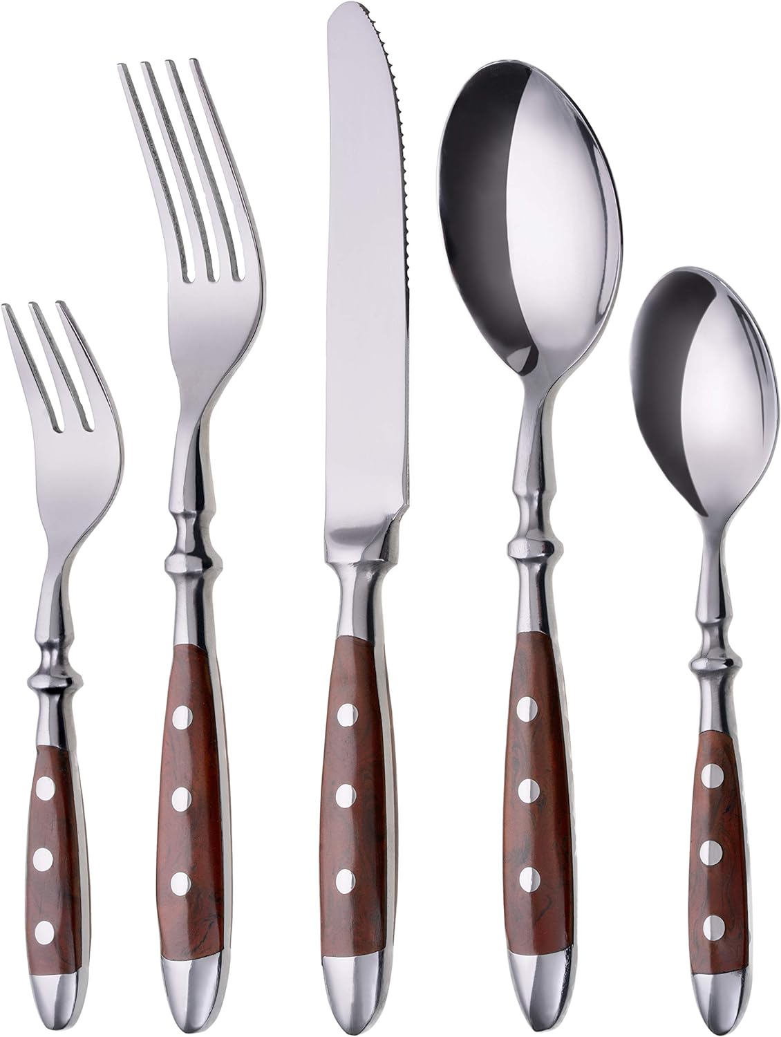 - Das geschmiedete Tafelbesteck mit braunen, dreifach vernieteten Kunststoffgriffen ist widerstandsfähig und verfügt über ein hohes Eigengewicht. Die Besteckteile liegen gut in der Hand und erlauben komfortables Speisen