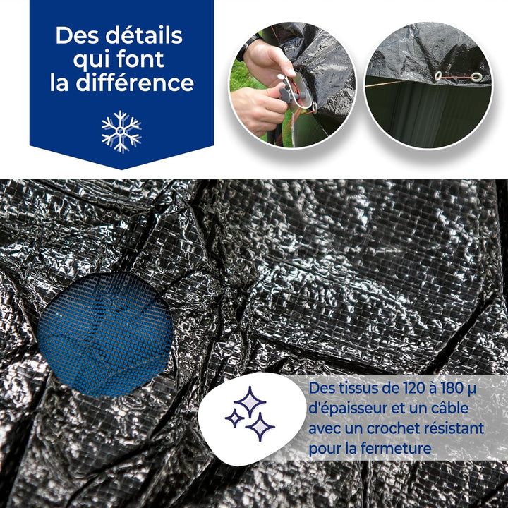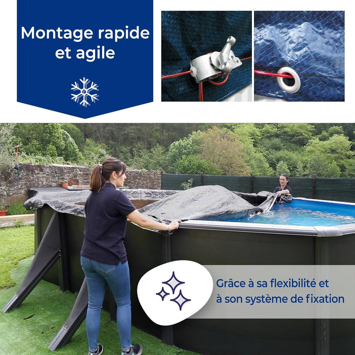 - Schützt das Schwimmbad im Winter, bewahrt das Wasser in gutem Zustand und verhindert Algenbildung