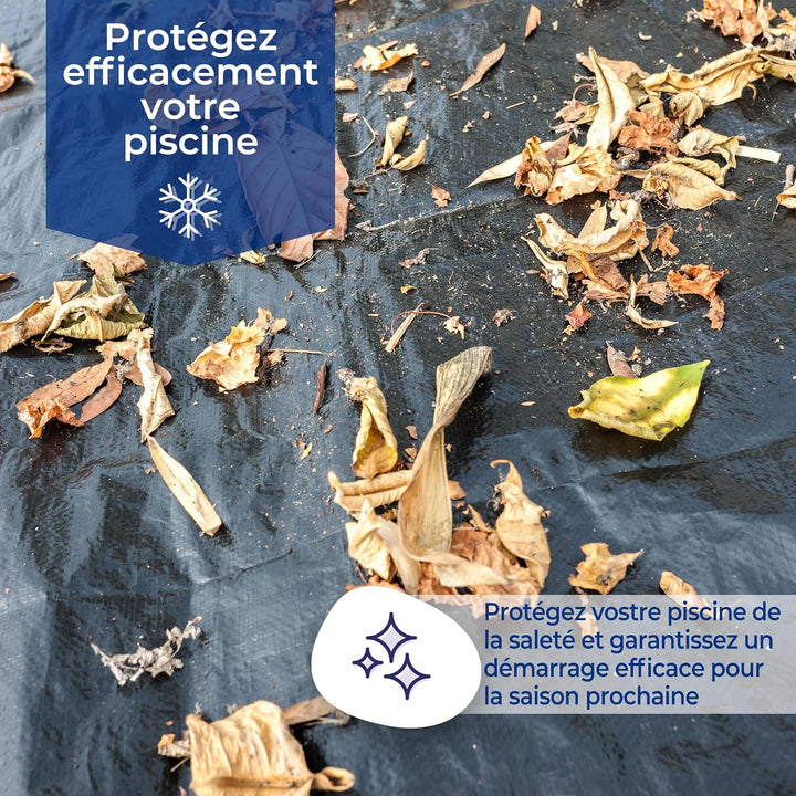 - Schützt das Schwimmbad im Winter, bewahrt das Wasser in gutem Zustand und verhindert Algenbildung
