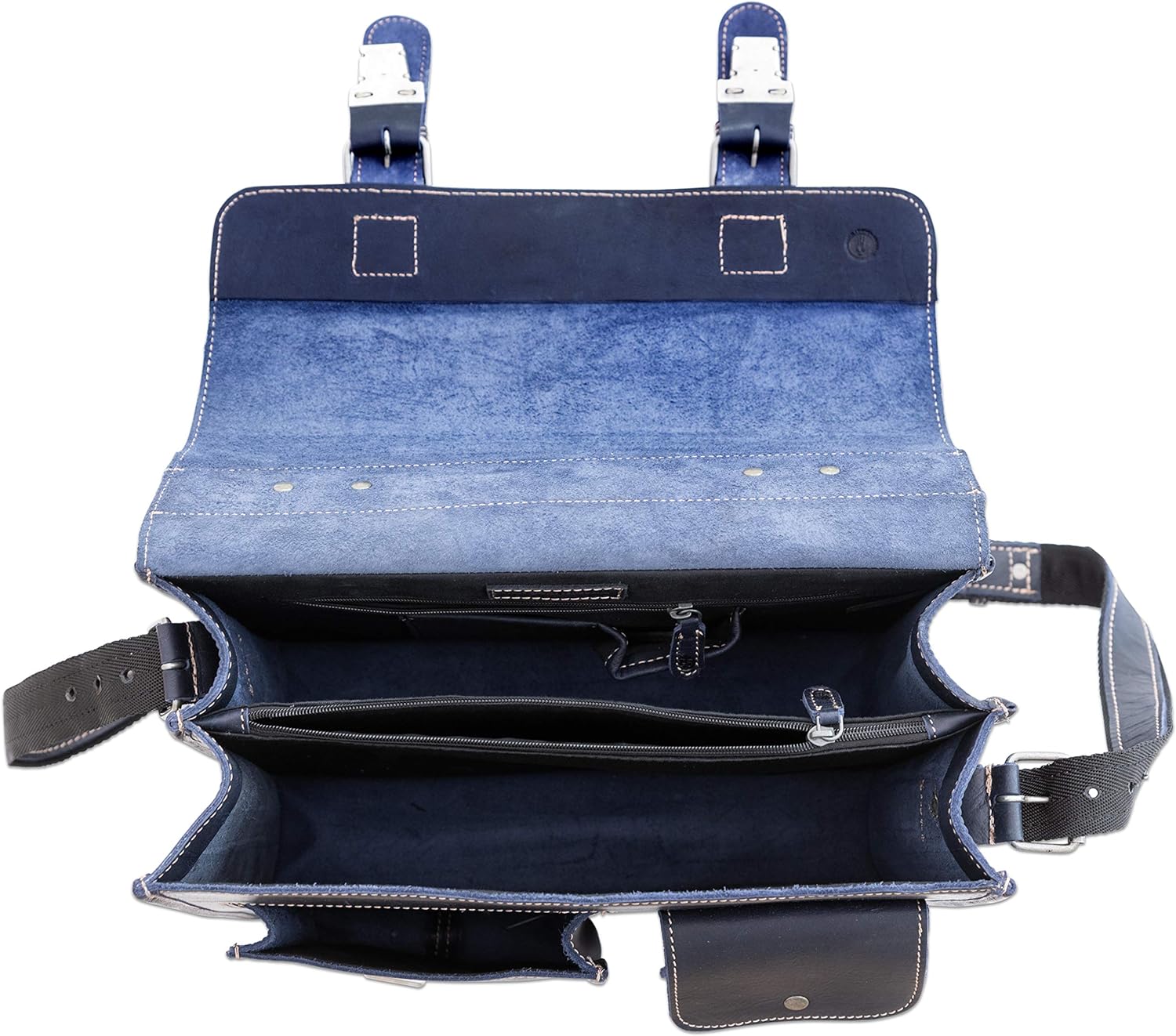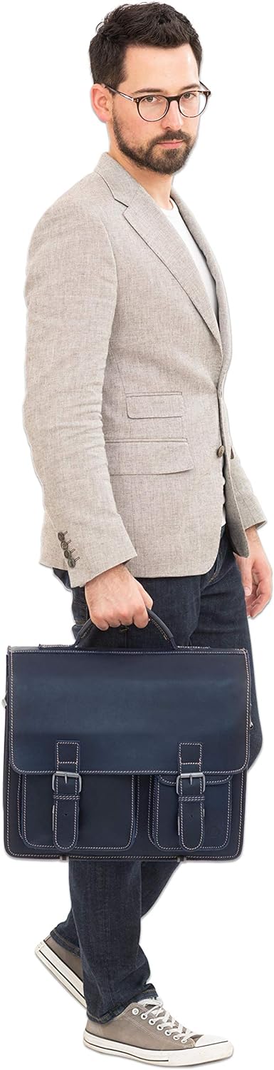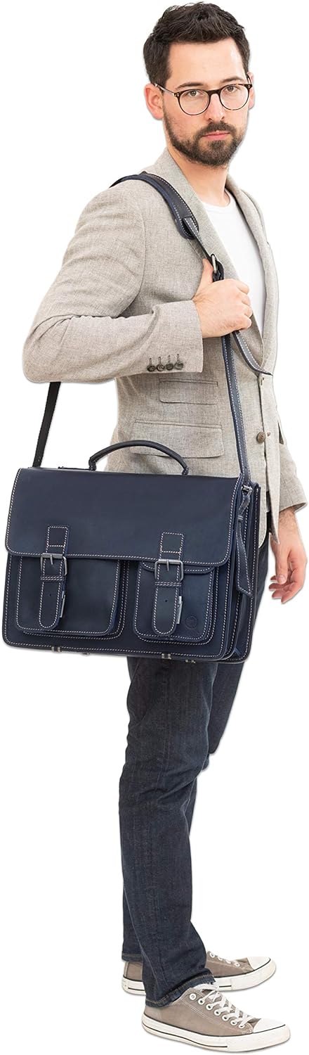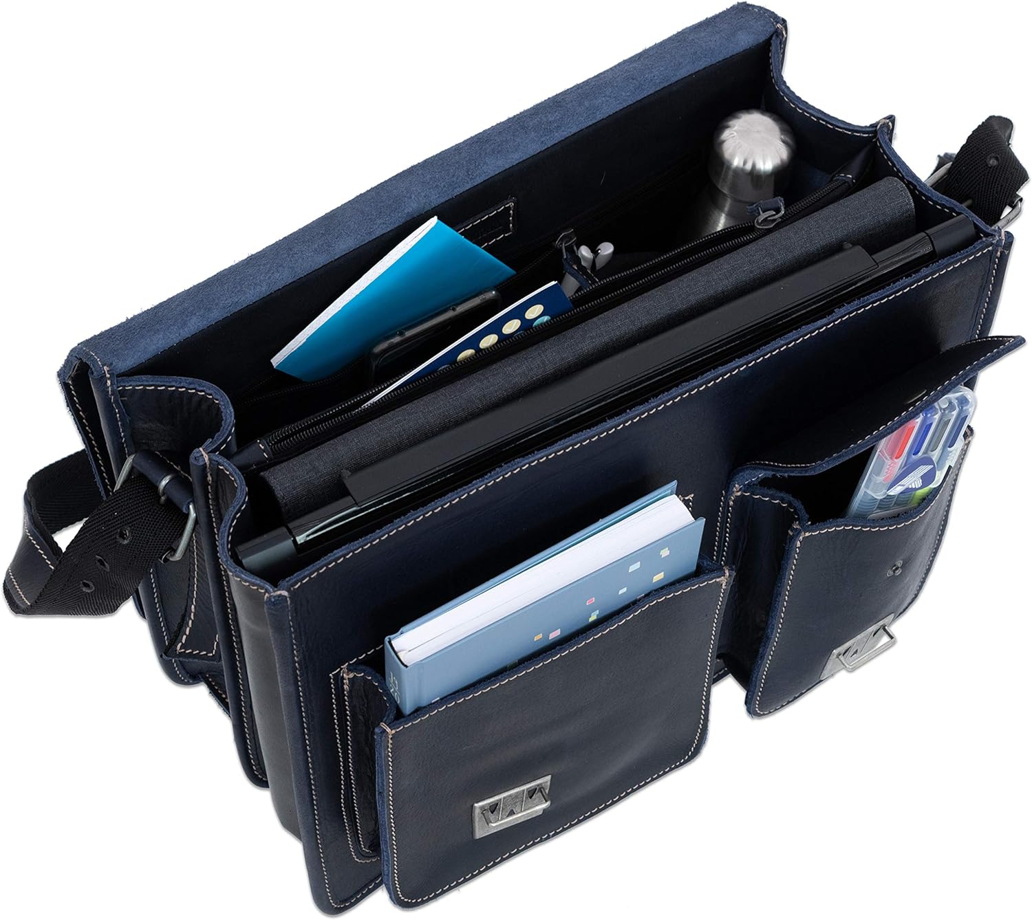 PRODUKTBESCHREIBUNGEN Marke: Greenburry Serie: Buffalo Modellnummer: 1128/NB Masse etwa: 39 x 32 x 17 cm Sehr gute und stabile Verarbeitung durch Handarbeit Hochwertiges Büffelleder Ein Tragehenkel Verstellbarer und abnehmbarer Schultergurt mit Polsterung Überschlag mit zweifachen Metallsteckverschluss Zwei grosse Hauptfächer, geeignet für zwei DIN A4 Ordner Trennwand zwischen den Hauptfächern mit Reissverschluss und dient als zusätzliches Fach Innen ein grosses Fach mit Reissverschluss sowie zwei offene Steckfächer Aussen zwei weitere Fächer auf der Vorderseite unter dem Überschlag sowie ein Reissverschlussfach auf der Rückseite Vier stabile Metallfüsse am Taschenboden