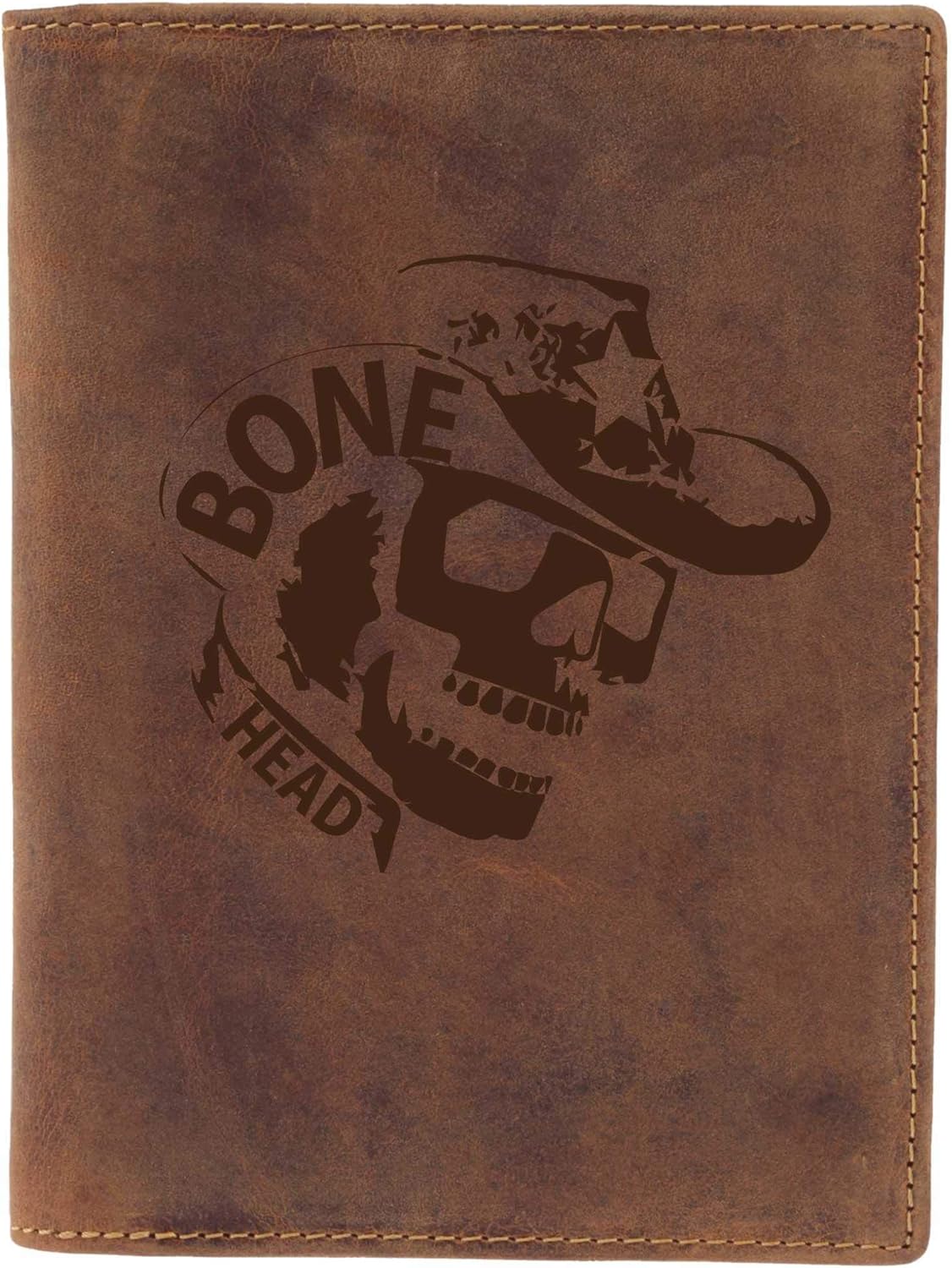 Greenburry Biker-Ausweismappe mit Skull Motiv - Führerscheinmappe für Biker - Leder Ausweistasche mi