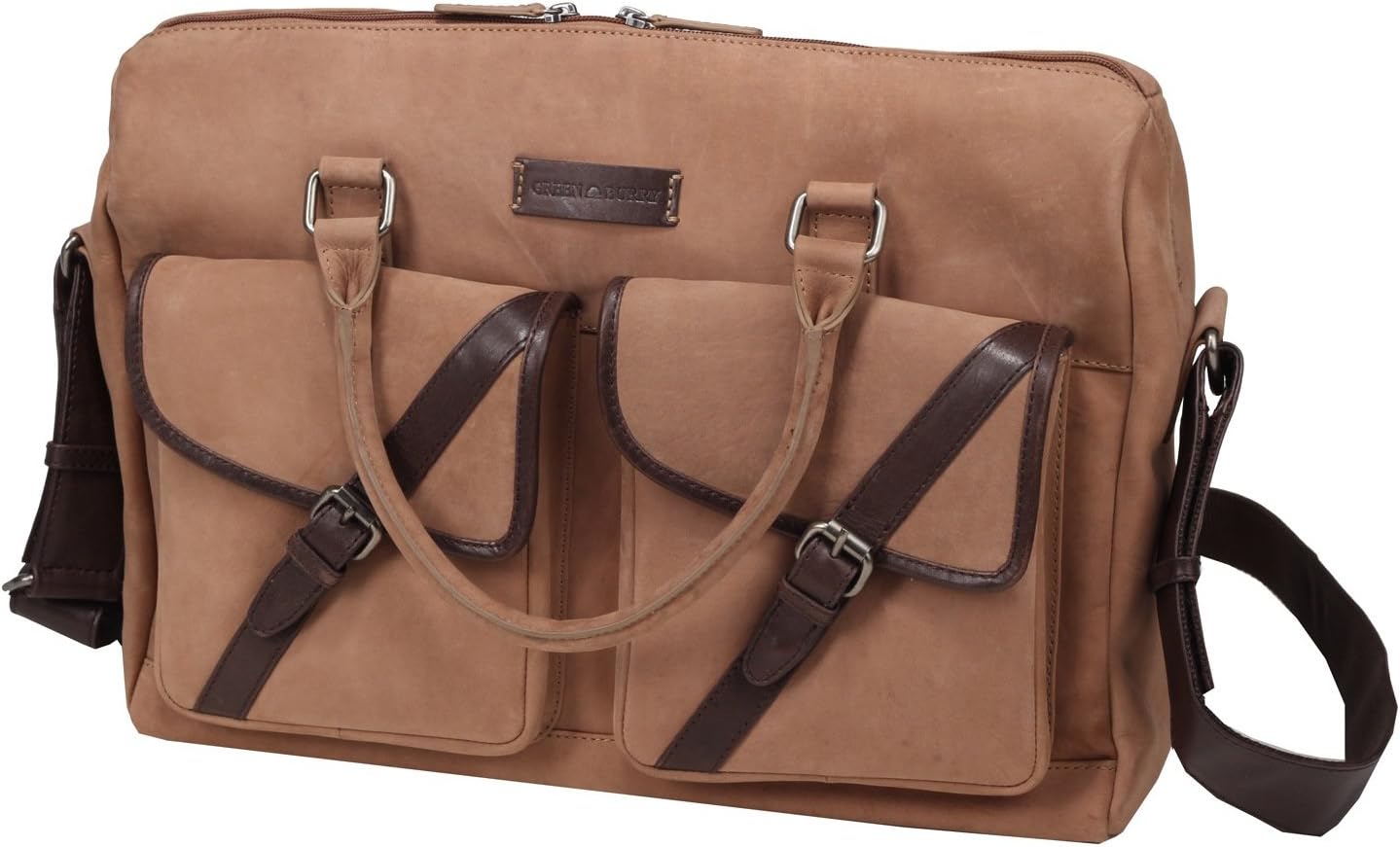PRODUKTBESCHREIBUNGEN Modell: Greenburry Businesstasche sand, aus der Kollektion Greenburry Longshore Material: Rindleder Farbe: sand Gewicht: 1350 Gramm Grösse: 41 x 31 x 12,5 cm Ausstattung: 1 Aussenfach mit Reissverschluss 2 Steckfächer 2 Vortaschen mit magnetischen Druckknopfverschluss 2 Innenfächer Taschenverschluss mit Reissverschluss 2 Tragegriffe VINTAGE TASCHE VON GREENBURRY