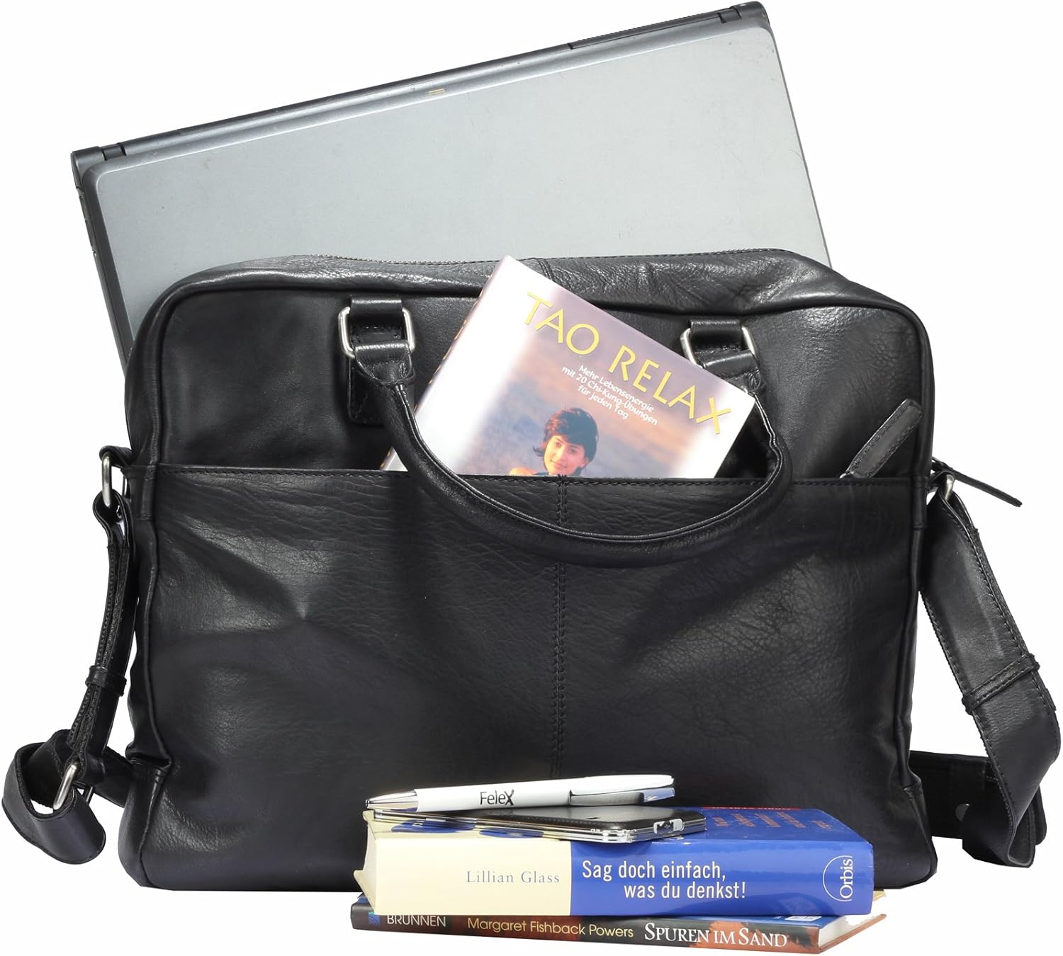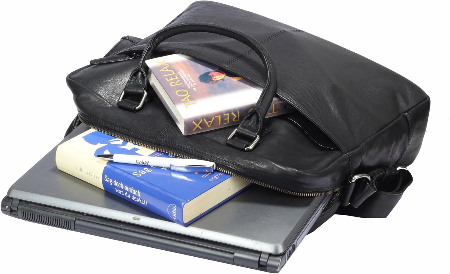 PRODUKTBESCHREIBUNGEN Marke: Greenburry Serie: Oily Tumbled Modellnummer: 693-20 Hochwertige und stabilie Verarbeitung durch Handarbeit Material: trommel gewaschenes, geöltes Rindsleder Masse etwa: 42x 33 x 11 cm Zwei bequeme Tragehenkel Abnehmbarer und verstellbarer Umhängeriemen Hauptfach mit Reissverschluss, passend für DIN A4 Innen ein gepolstertes Laptopfach, zwei offene Steckfächer sowie ein weiteres Reissverschlussfach Unter dem Überschlag zwei weitere Steckfächer sowie zwei Stiftschlaufen Auf dem Überschlag ein zusätzliches Reissverschlussfach Aussen ein Reissverschlussfach auf der Vorder- und Rückseite sowie eine praktische Trolleyhalterung