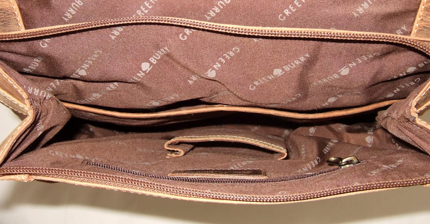 PRODUKTBESCHREIBUNGEN Marke: Greenburry Modellnummer: 1545-25 Serie: Vintage Hochwertige und stabile Verarbeitung Material: Naturbelassenes, per Hand nachgewachstes Rindsleder Masse etwa: 30 x 38 x 14 cm Bequeme und verstellbare Schulterriemen Praktischer Tragehenkel Überschlag mit zweifachen Magnetknopf Hauptfach mit Reissverschluss Innen ein Reissverschlussfach, ein offenes Steckfach sowie ein gepolstertes Tablet-/Notebookfach Aussen je ein Fach mit Reissverschluss auf der Vorder- und Rückseite Rückenteil aus Baumwolle für einen angenehmen Tragekomfort