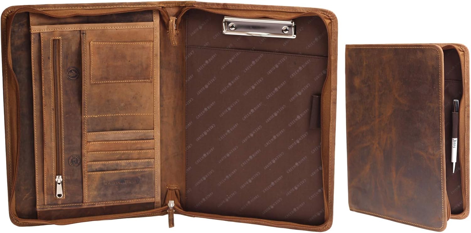 - ✔️ SICHERHEIT - Die Greenburry-Schreibmappe-A4 besitzt jeweils ein Reissverschlussfach in der Innenseite sowie auf der Rückseite. Hier finden wichtige Dokumente gesichert Ihren Platz!!!