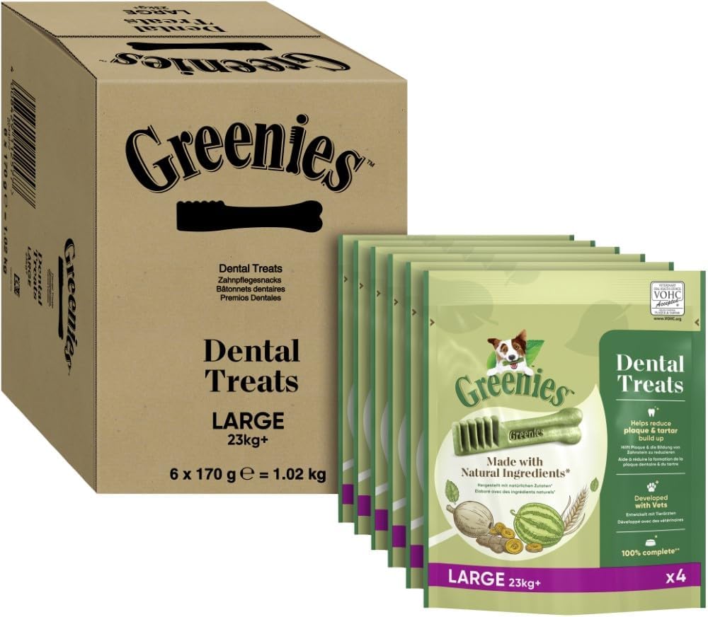- Lieferumfang: 24 GREENIES Original grosse Hundeleckerlis / Von Tierärzten für die Zahnpflege entwickelt und zugelassen / Köstliche Leckerlis werden in einer praktischen Tasche geliefert - ideal für unterwegs!