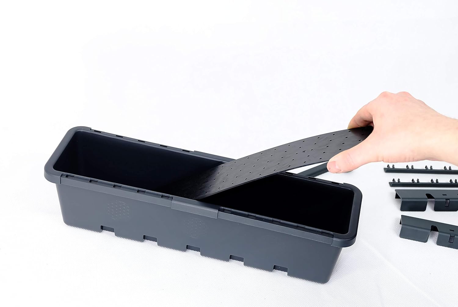 - 6 Hakenleisten zur Anbringung am Stabmattenzaun