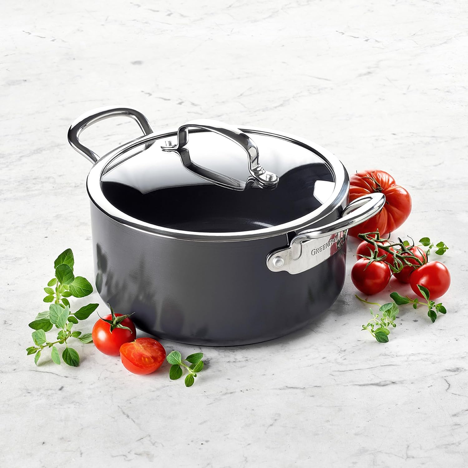- KERAMISCHE ANTRIEBSHAFTUNG: Die mit Diamanten durchsetzte, metallgeeignete keramische Antihaftbeschichtung von GreenPan bietet bemerkenswerte Haltbarkeit, gleichmässige Erhitzung und mühelose Reinigung