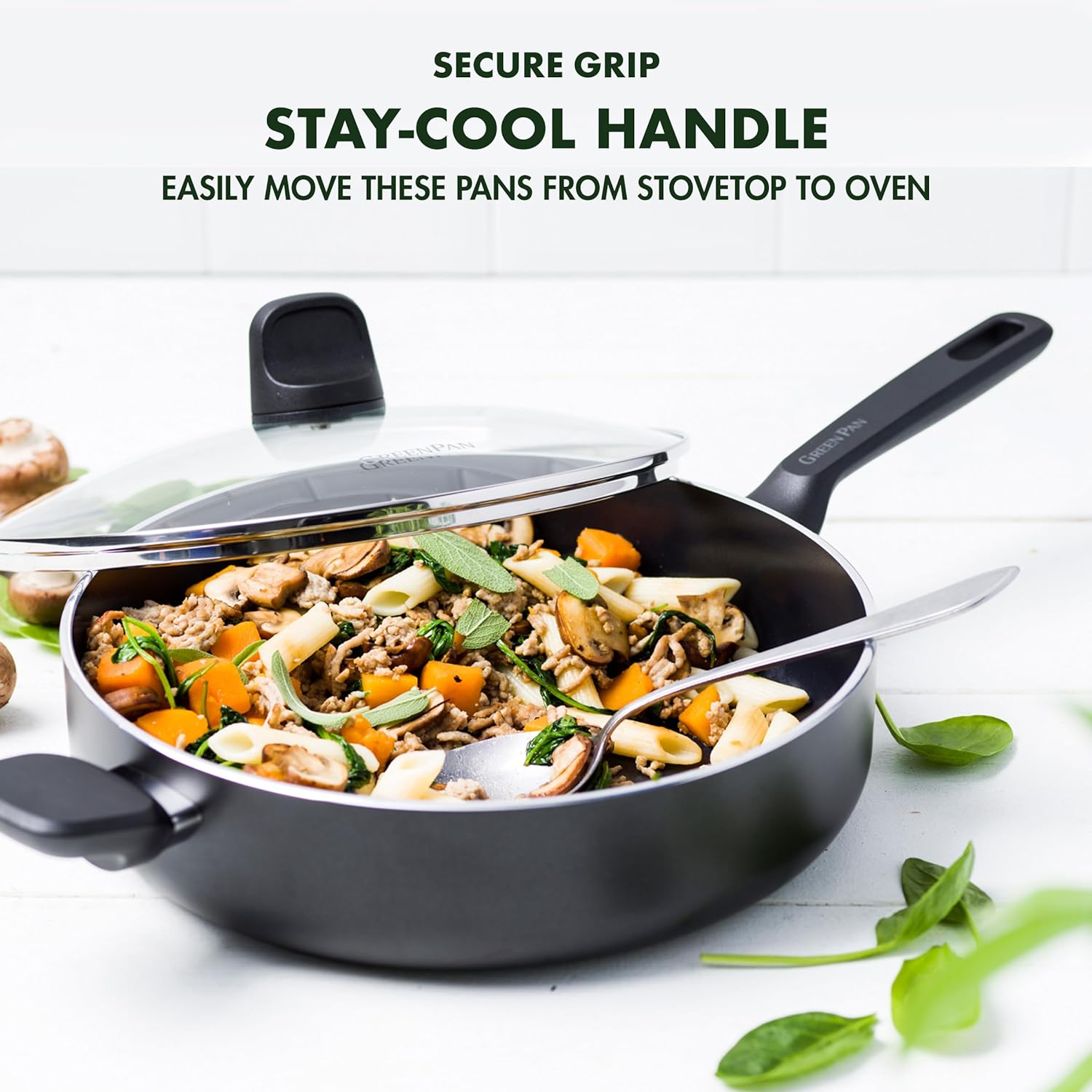 GreenPan Memphis Schmorpfanne (28 cm/4,2 L), gesunde keramische Antihaftbeschichtung, PFAS-frei, ind