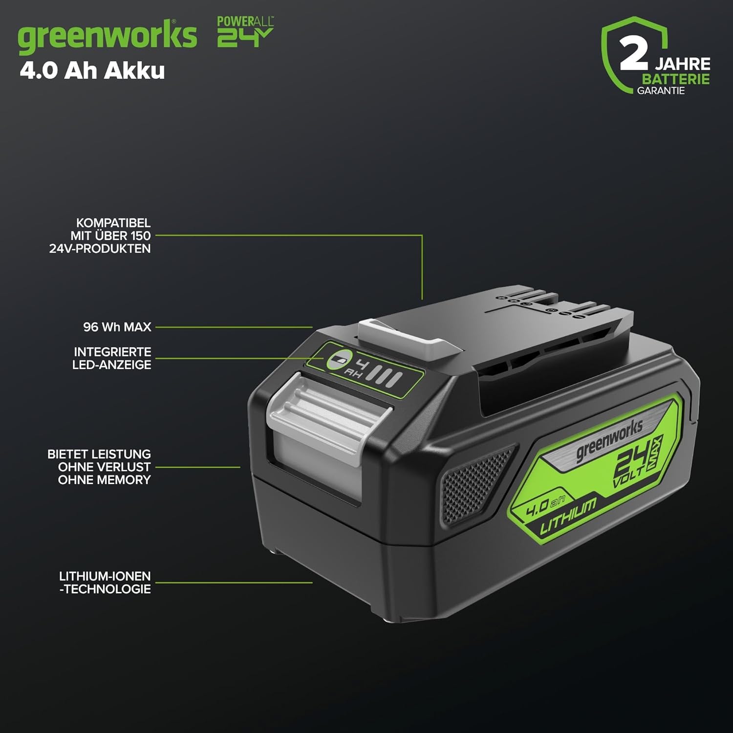 - KOMPATIBEL MIT ALLEN GREENWORKS 24V WERKZEUGEN - dieser robuste und zuverlässige, fortschrittliche Akku versorgt alle Werkzeuge der Greenworks 24 V Reihe, so dass Sie Abfall vermeiden und Geld und Lagerplatz sparen können