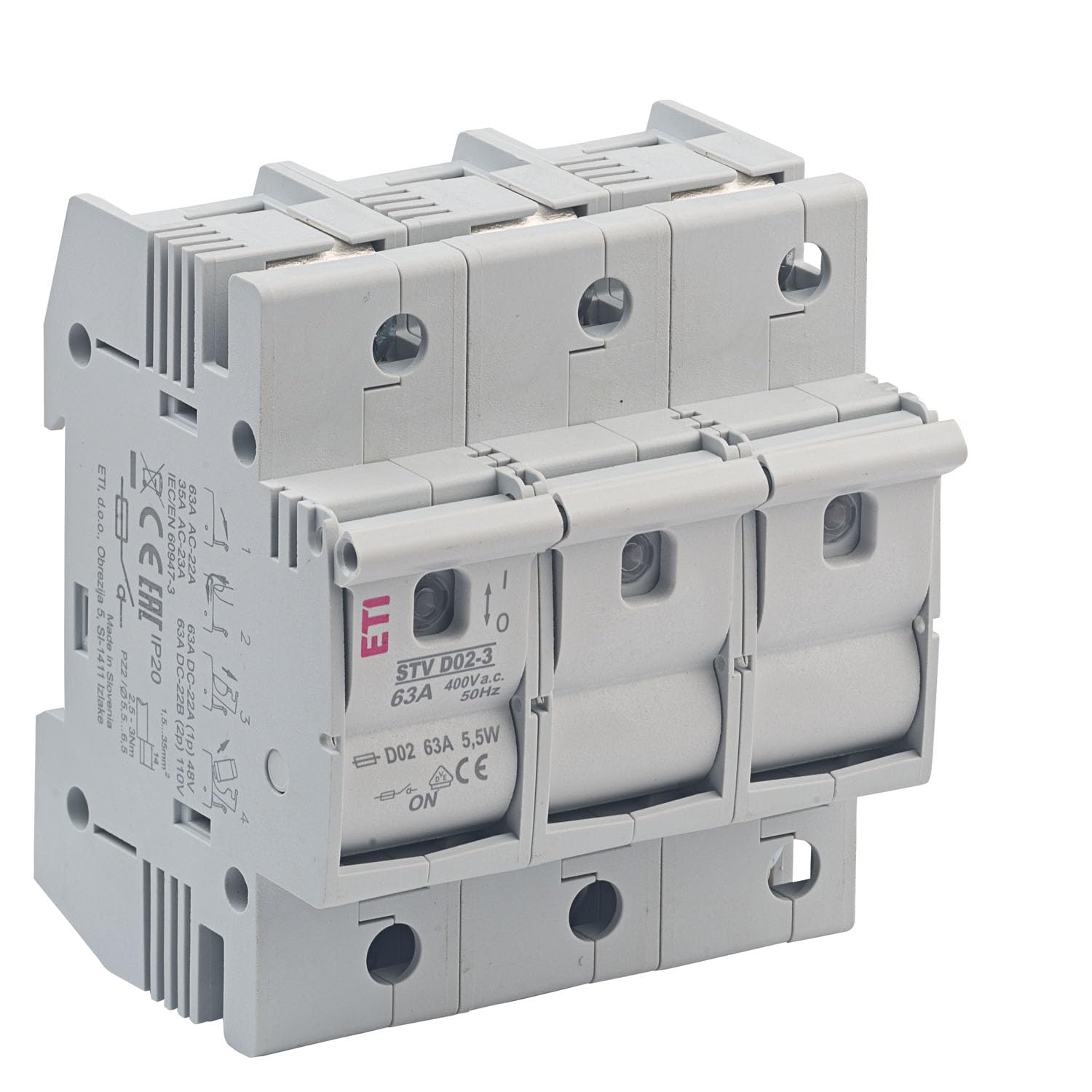 • Neozed Lasttrennschalter D02 3-polig als Komplettpaket. Passt auf DIN-Hutschienen 35mm (gängig in Elektroverteilungen, Sicherungskästen, Zählerschränken usw.).