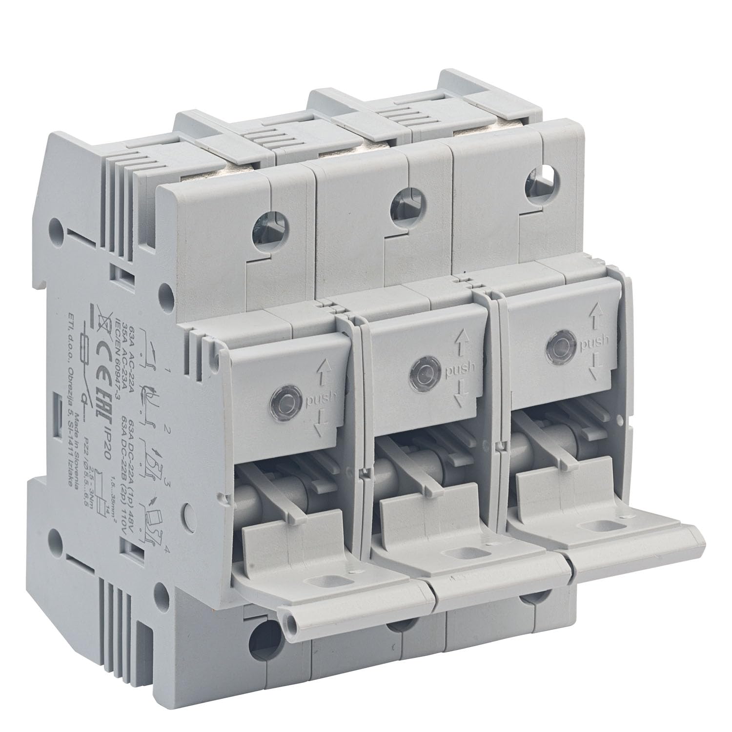 • Sie bieten folgende Schutzvorteile: Wechsel des Sicherungseinsatzes ohne Gefahr eines direkten Kontaktes mit unter Spannung stehenden Teilen, Schnellbefestigung nach EN 60715, Berührungsschutz nach VGB 4.