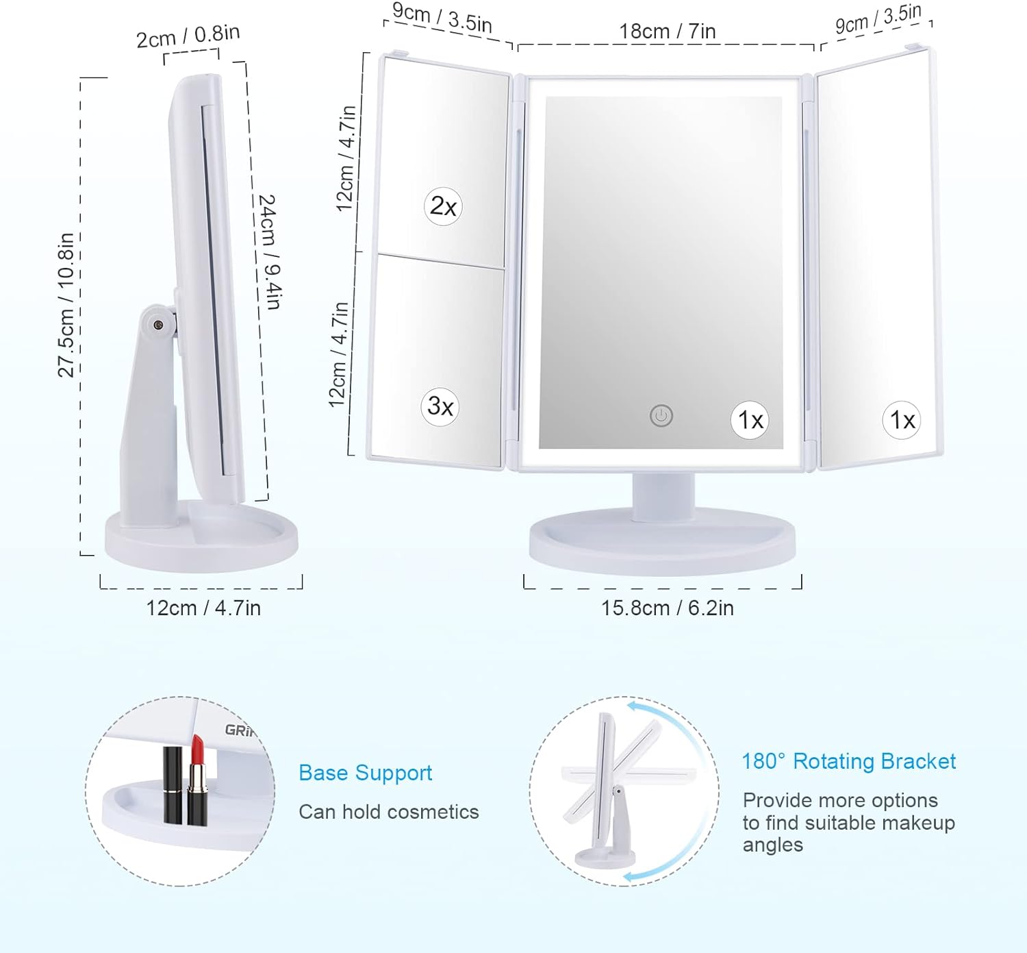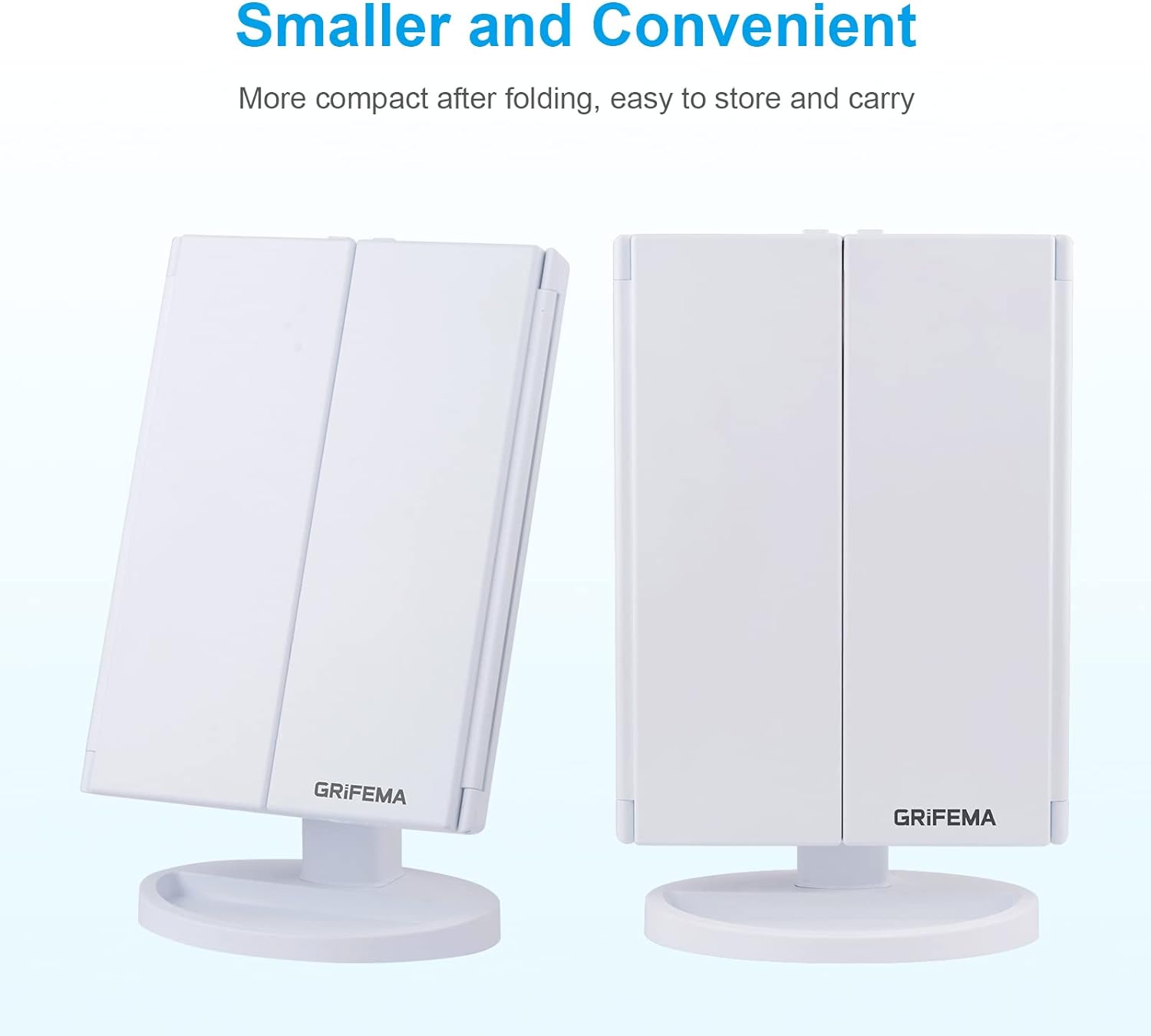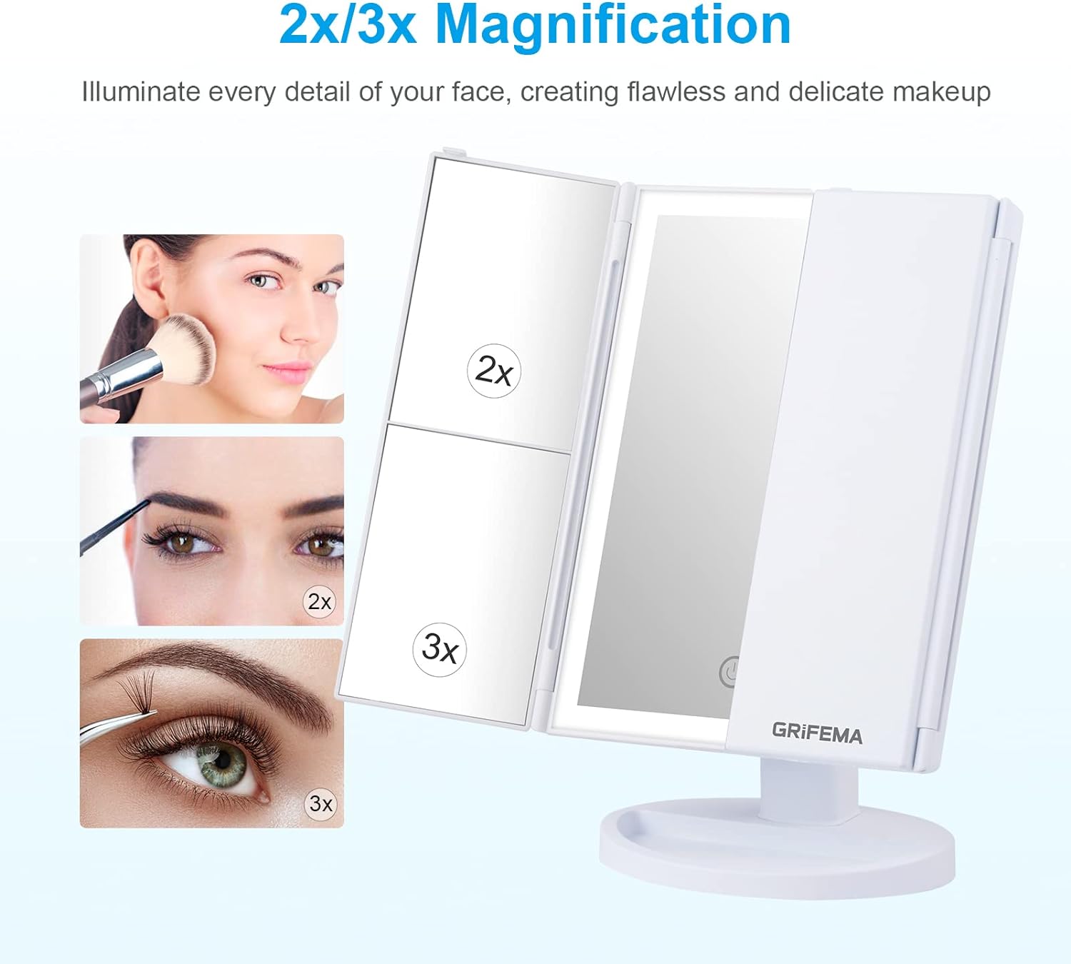- Dreifach Gefaltetes Kosmetikspiegel - GRIFEMA Faltbarer Schminkspiegel Beleuchtung Bietet eine Vergrösserung 3X 2X 1X, um Gesichtszüge und Detail Schmink klar Sehen.