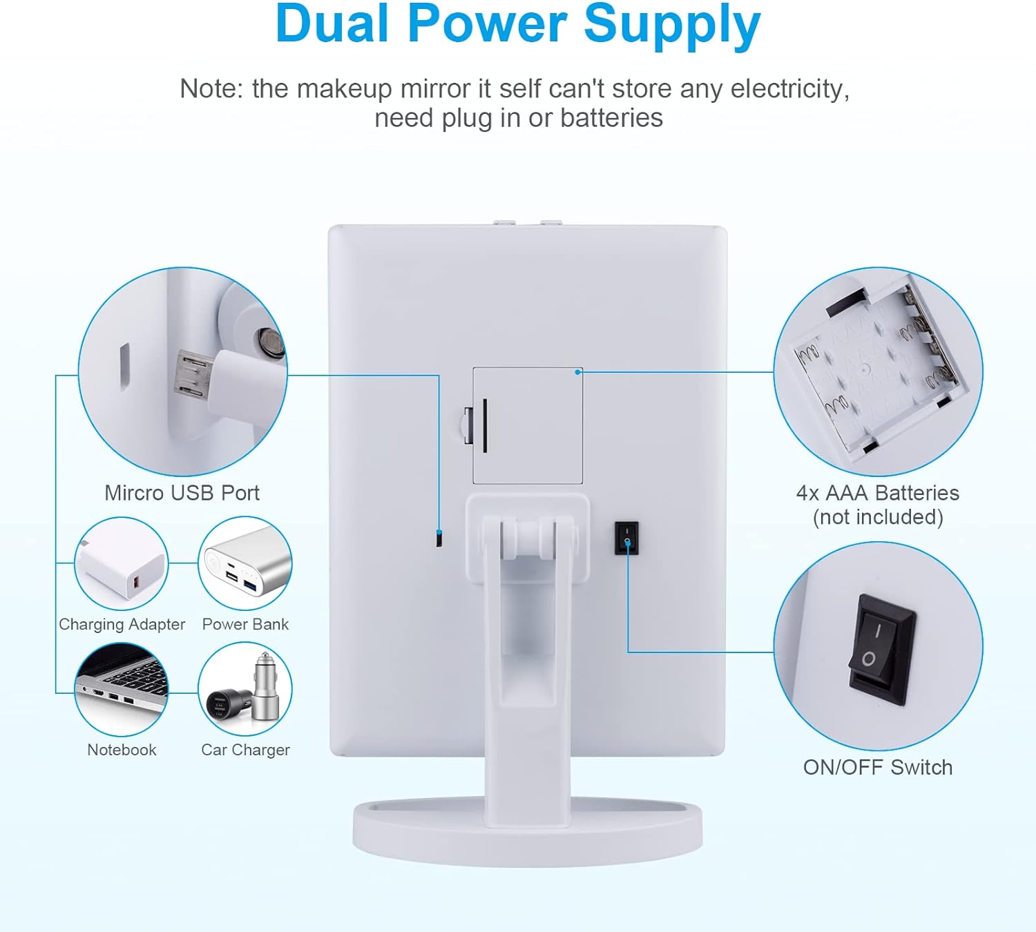 - Dual Energie Modus - Doppelte Stromversorgungsmodi, Können über USB oder 4-teilige AAA-Batterien Batterien sind nicht im Lieferumfang Enthalten, USB-Kabel ist im Lieferumfang Enthalten mit Strom Versorgt Werden.