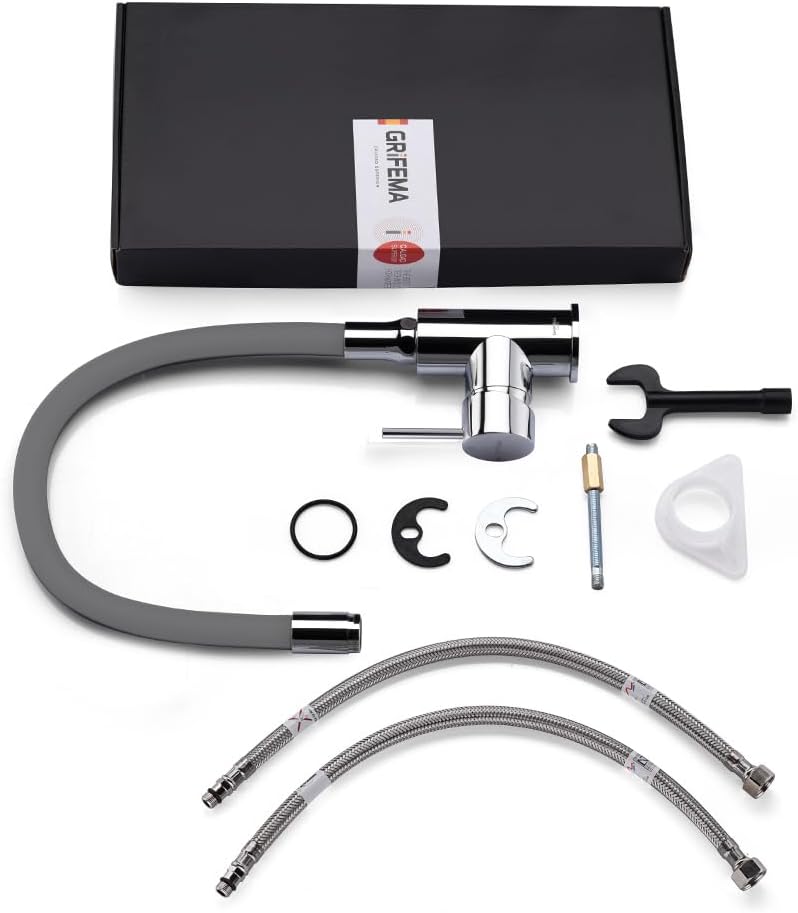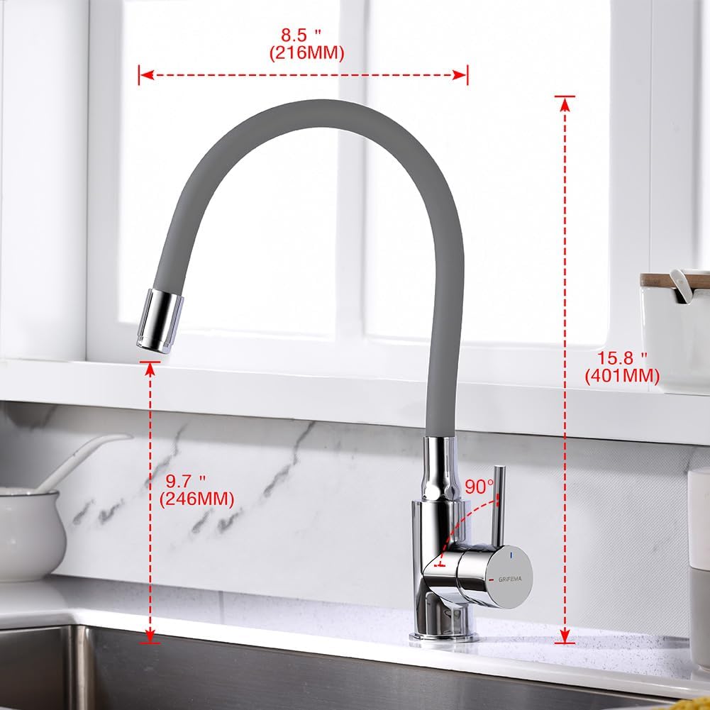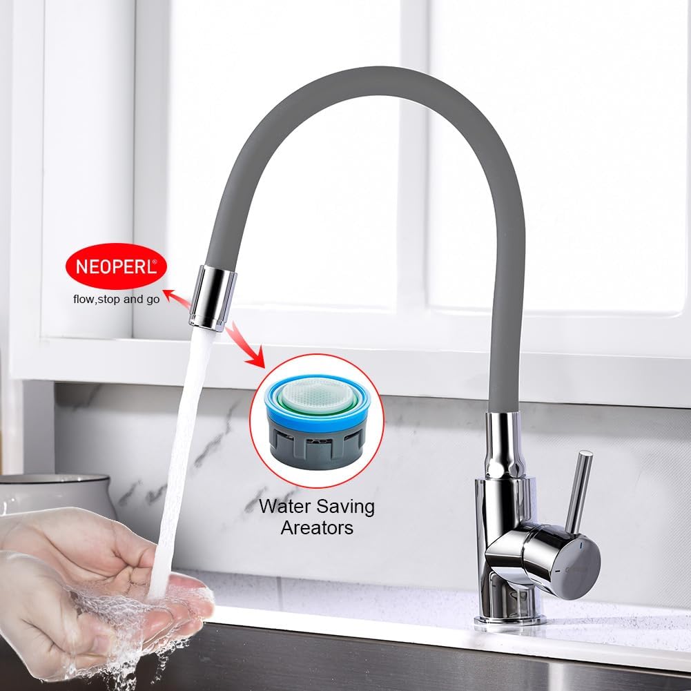 - Stilvoller grauer flexibler Auslauf, perfekt für den neuen Küchenraum.
